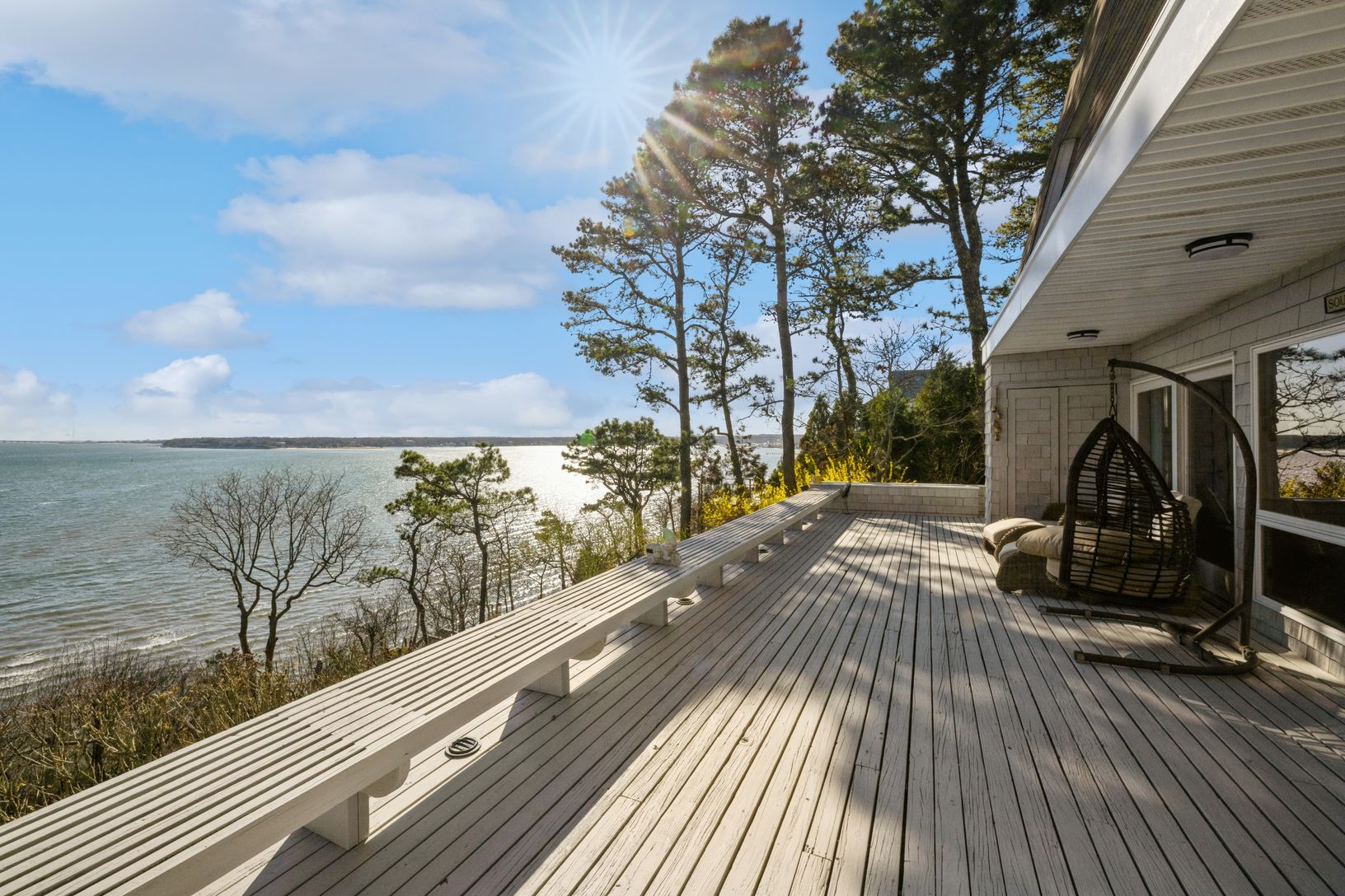 Come see this amazing getaway!! It’s just been renovated with new floors, carpet, and furnishings. sunrises and sunsets overlooking Shinnecock Bay and the Atlantic Ocean. Crisp modern waterfront in Southampton sitting at the top of the bluff on private road. Enjoy commanding views of the Shinnecock bay and huge ocean from every room!! Truly an incredible per
