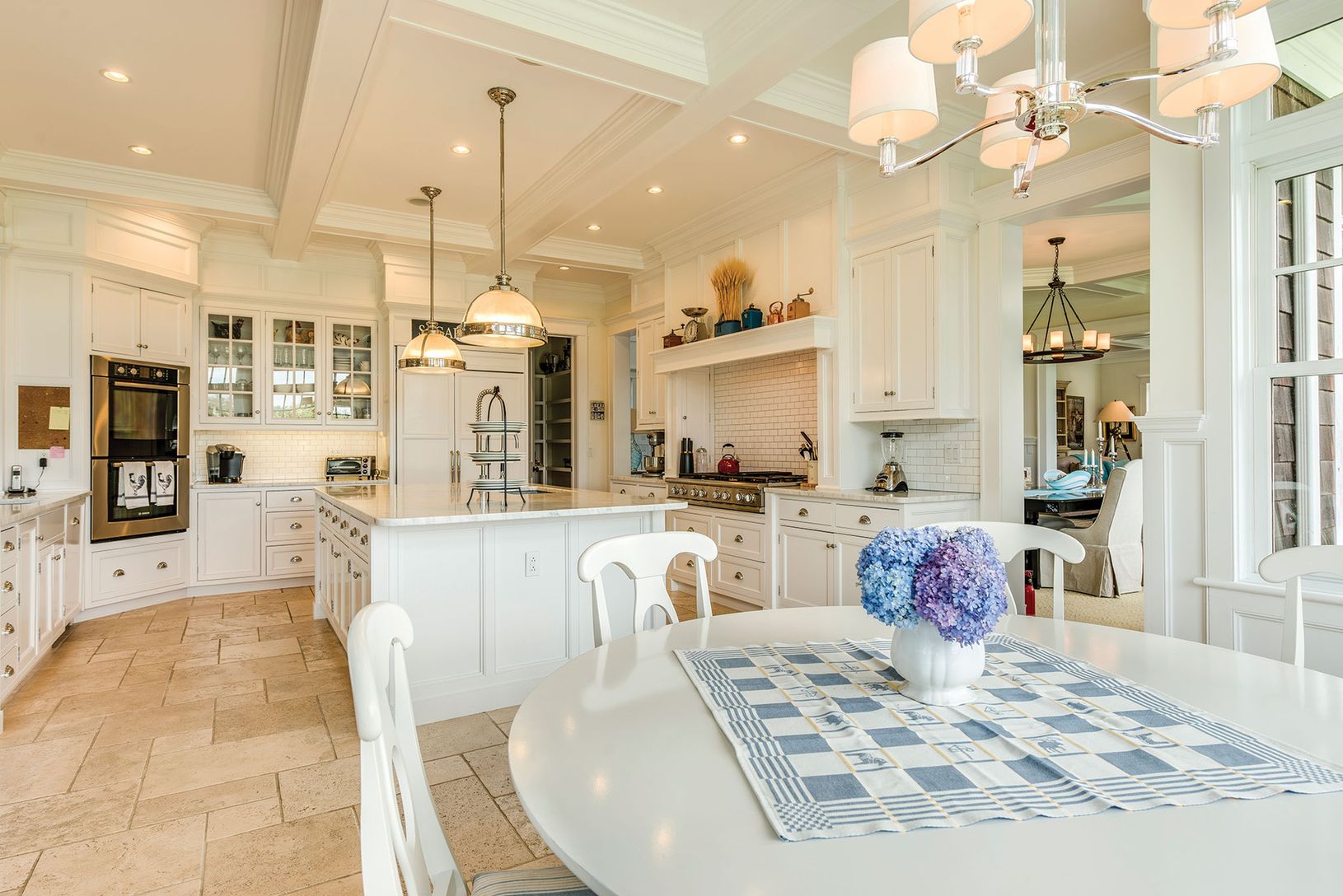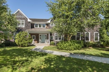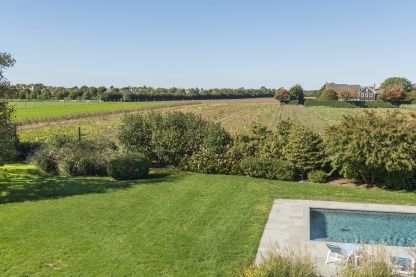 At the end of a quiet cul-de-sac in Sagaponack south, overlooking a bucolic 16-acre farm field reserve, this lovely shingled traditional home on a just-shy acre expresses quintessential Sagaponack style and offers remarkable peace and quiet. The home offers 8,000+/- sq. ft. of living space, with six bedrooms, seven full and two half baths. Enter the double-height foyer flowing to first floor interiors including the living room with coffered ce