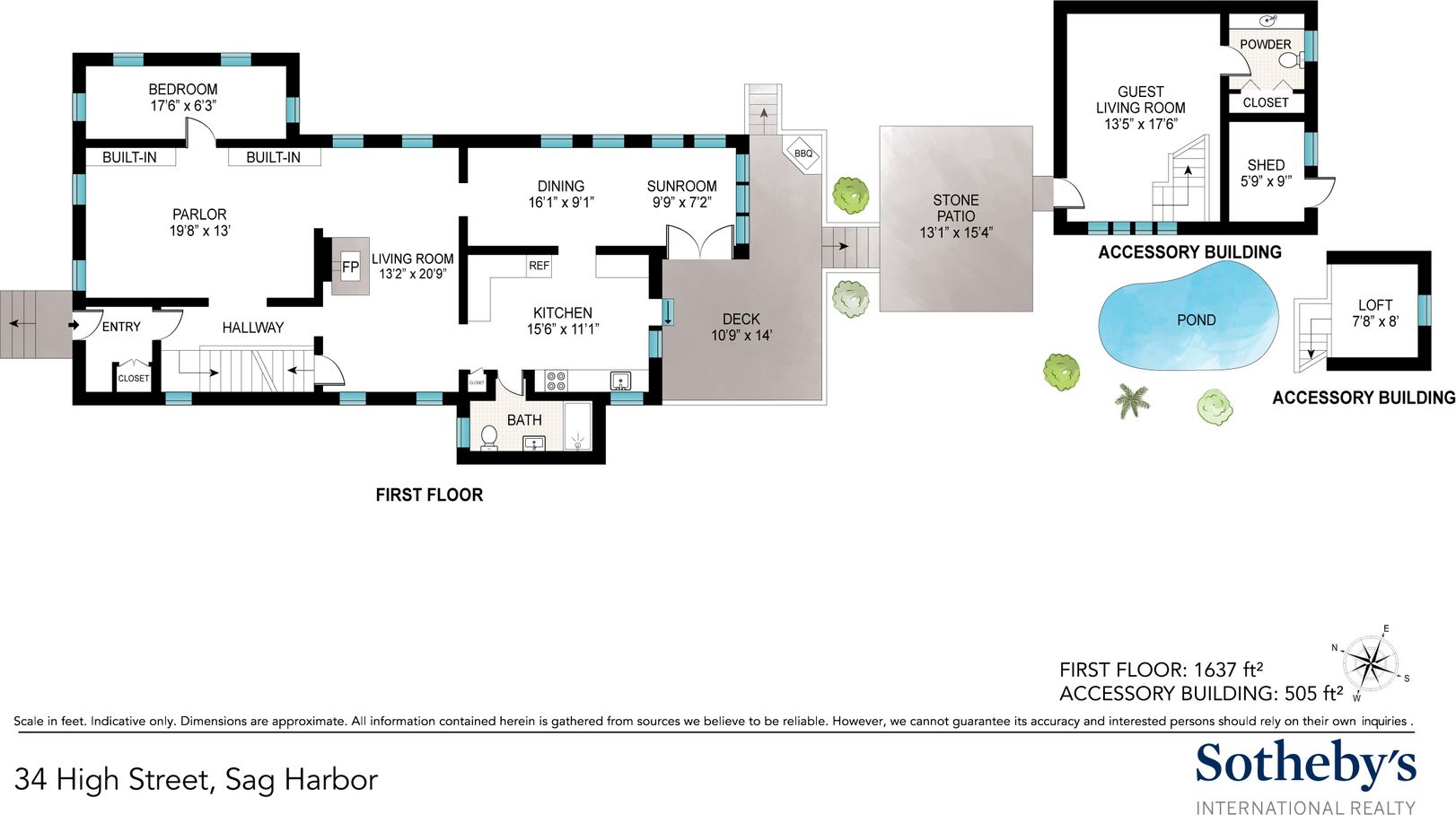 Inviting, renovated Sag Harbor Village home offers generously proportioned double parlors, garden dining room, cook's kitchen opening to an entertaining deck overlooking the garden, bedroom and bath. Two additional bedrooms on the second floor and stairs to a spacious finished third floor with bath. The entertaining deck leads to a stone patio and large Studio. Beautifully maintained home & garden on .18 acres on charming High Street, j