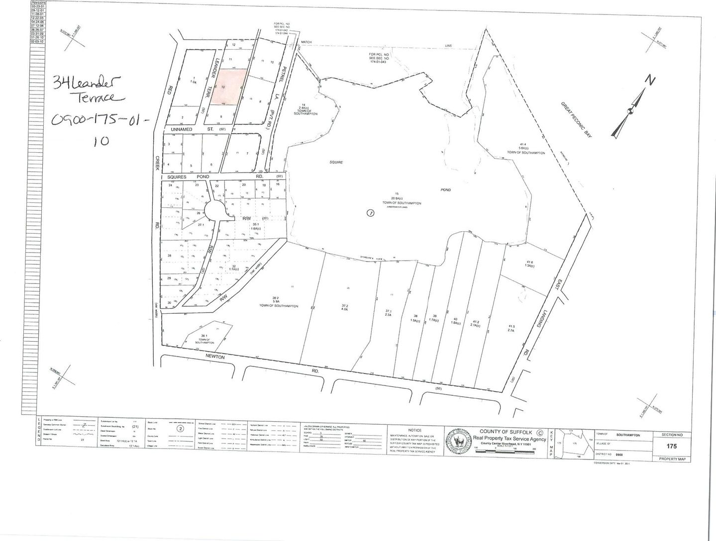 ADDRESS IS 34 LEANDER TERRACE (Outeast/Zillow has incorrect address tagged to Tax Map#.) Opportunity Knocks! Located in the beautiful Red Creek neighborhood area between East Landing and West Landing in Hampton Bays, this vacant residential lot offers views across picturesque Squires Pond from its higher elevation on Leander Terrace with distant views of Peconic Bay beyond. A county health dept permit is already approved for 4-bedroom capacity
