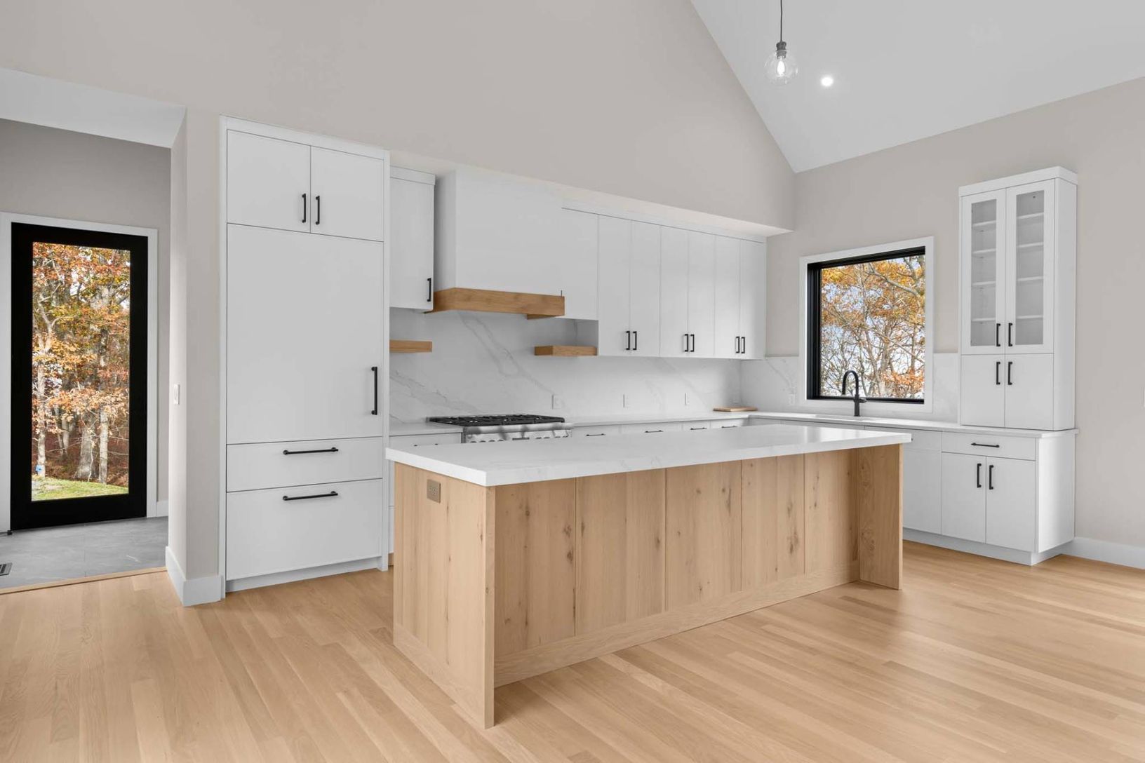 Designed by Joseph Pagac Architect PC and built by Cold Spring Harbor Construction, this new Transitional-style home is located in the beautiful Red Creek area of Hampton Bays. Sited on 0.61 acre on a quiet, private lane overlooking picturesque Squires Pond and Peconic Bay beyond, this newly constructed residence features 3000 +/- SF of luxury living space, 4 bedrooms, 3 full bathrooms, one half bath, and a convenient right-of-way path to Petr