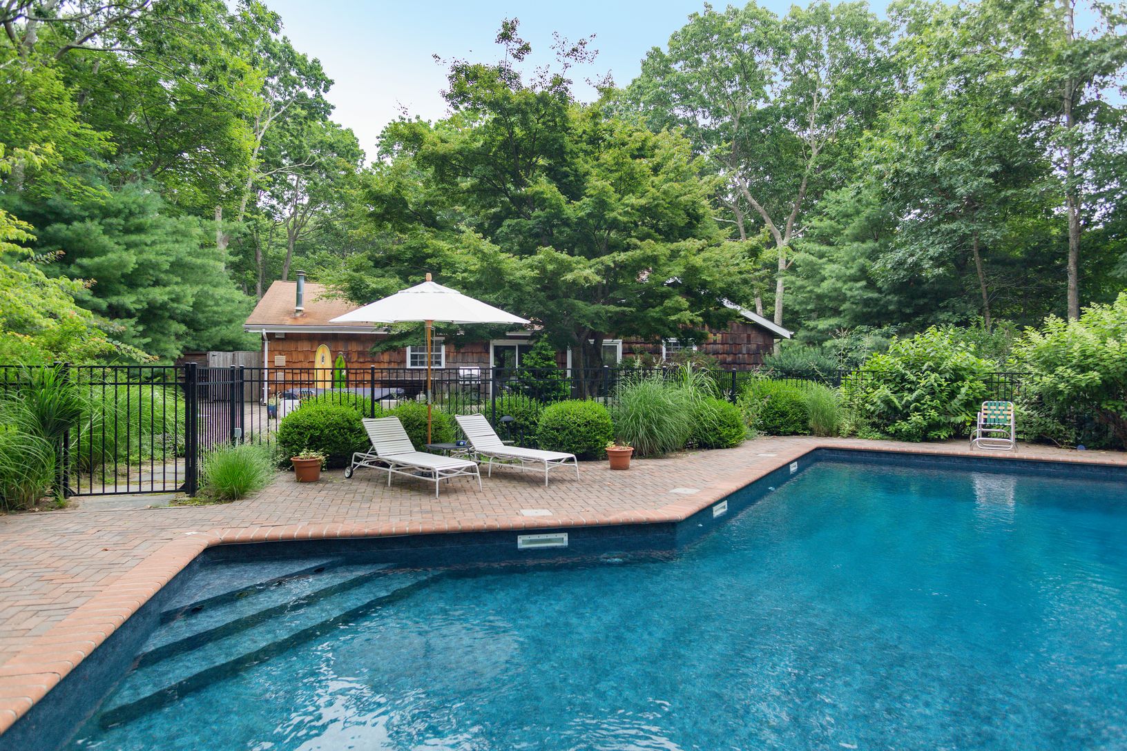 Spend your summer entertaining or simply enjoying the tranquility of this nearly one acre, beautifully landscaped 3 bed, 2 bath home with private heated pool, central air conditioning, and outdoor shower. The fenced-in backyard has a large patio with dining table, grill, and an outdoor living room, with the pool area fully enclosed, allowing for that extra peace of mind. The living room offers plenty of seating for movie night or entertaining,