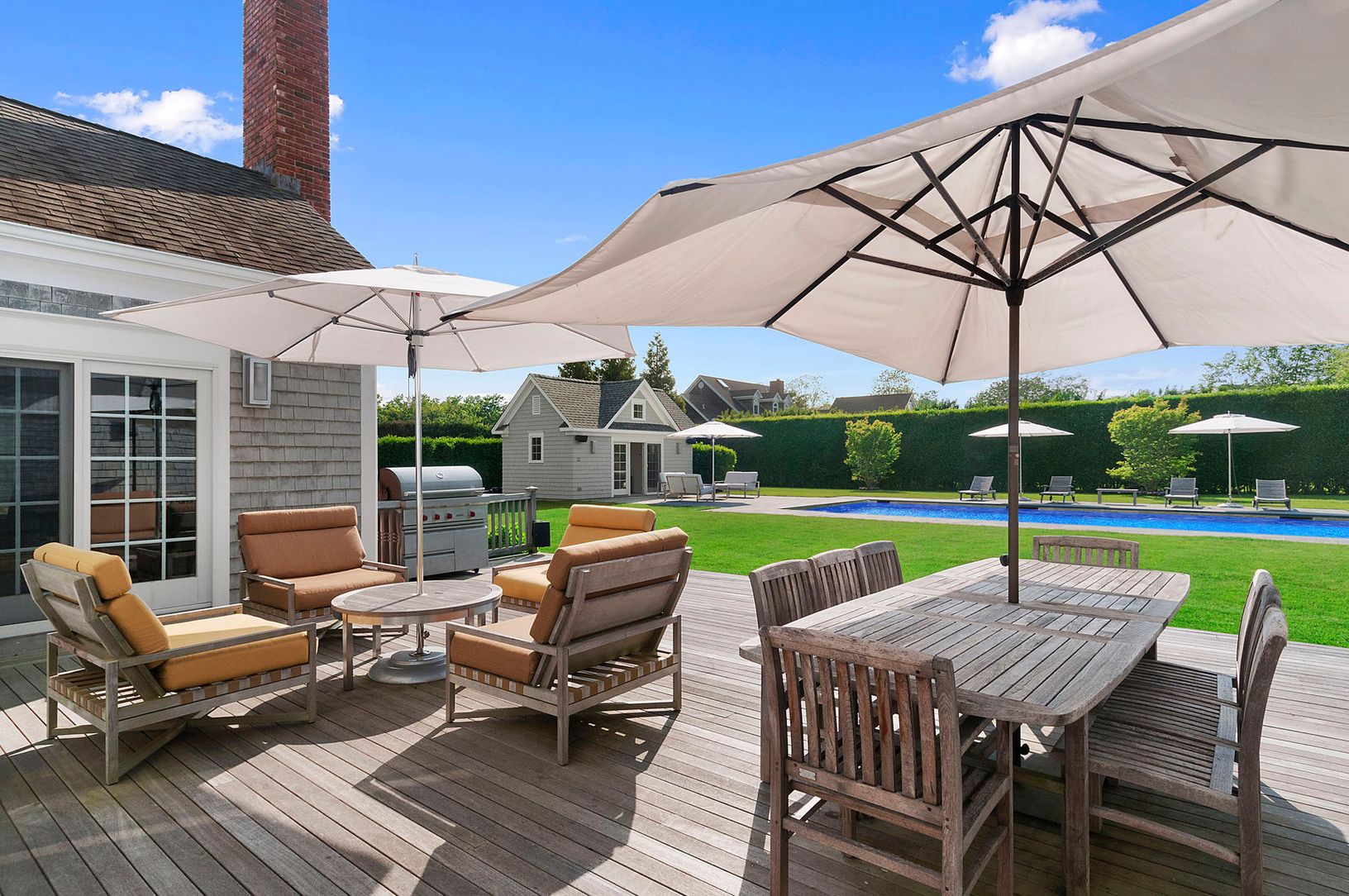 This beautiful shingle style Traditional with contemporary interiors and about 4,900 sq ft of living space is situated on a shy acre in one of the most picturesque neighborhoods and just minutes outside of Southampton Village.