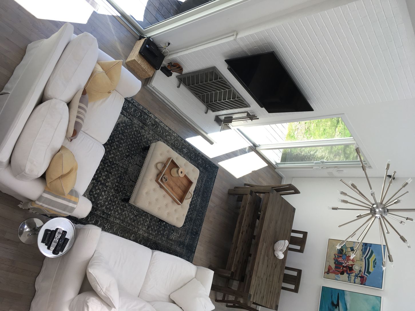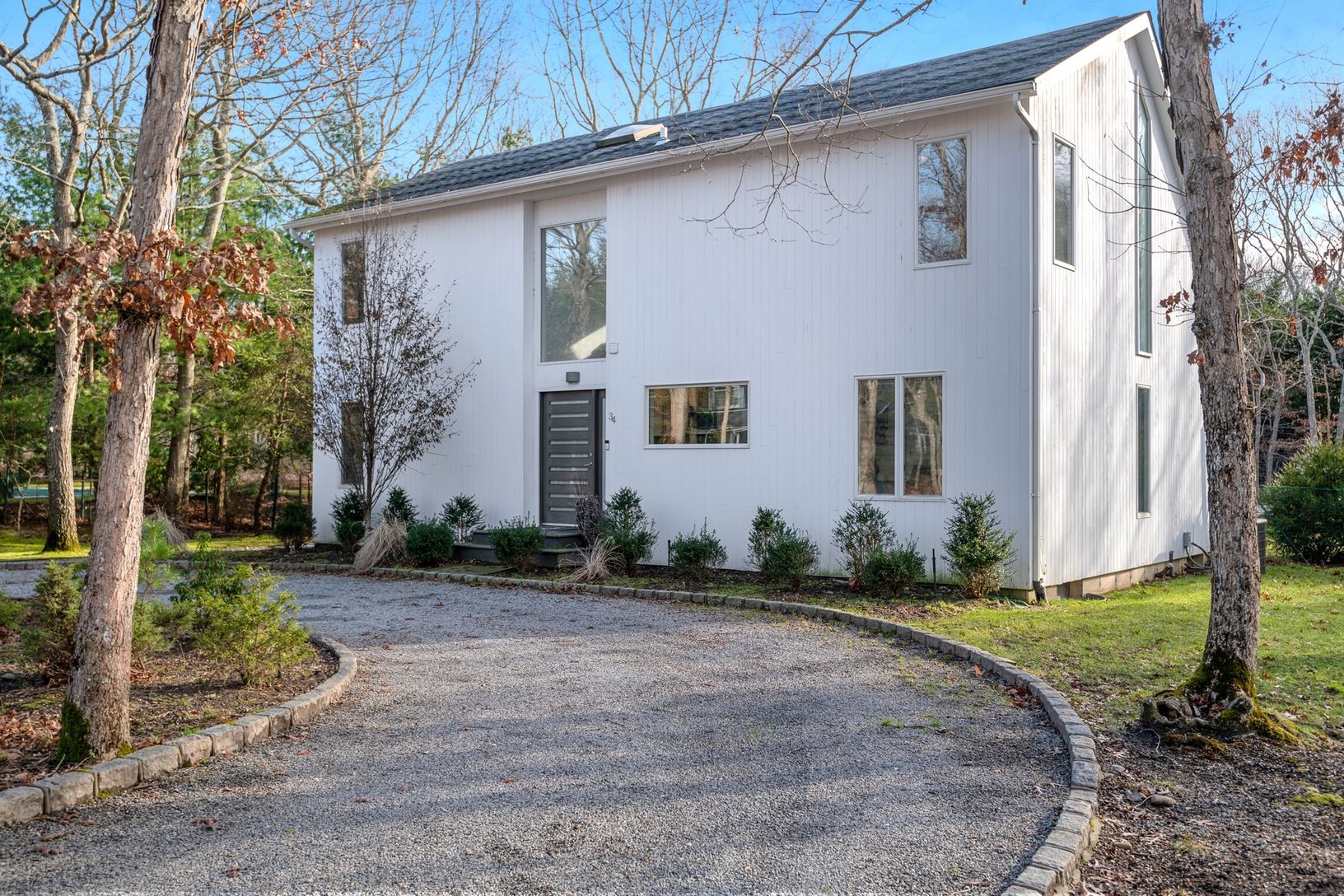 New to market and a must see! This move-in ready beach house was recently fully renovated and is well located quite close to town. The light filled great room is graced by an iconic mid-century design chandelier over the wood-burning fireplace and has two sets of south-facing doors that open onto the spacious and sunny deck and pool. Open to the great room you will find the large and fabulous high end kitchen with its statuario nuvo quartz cou