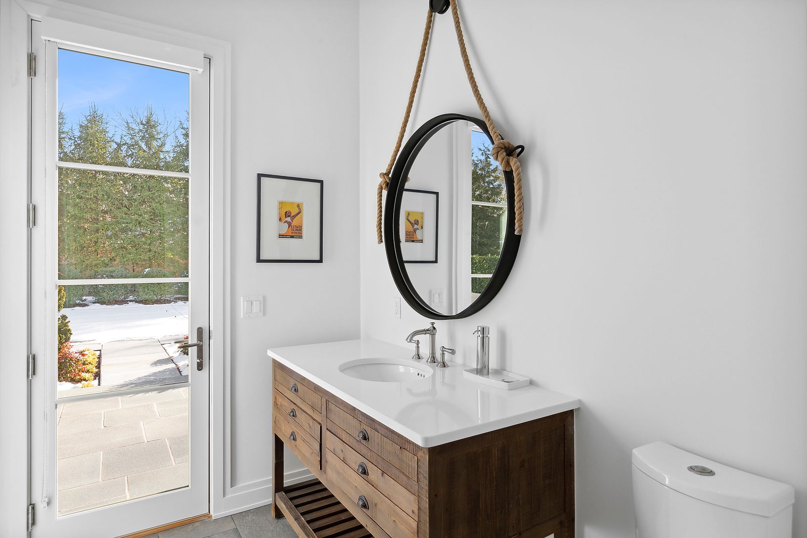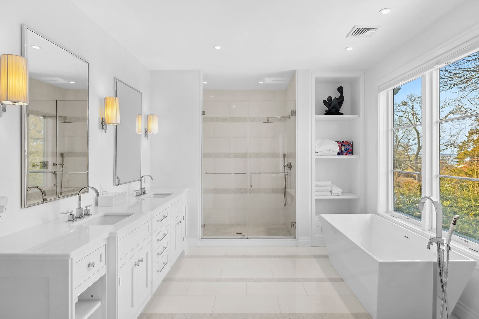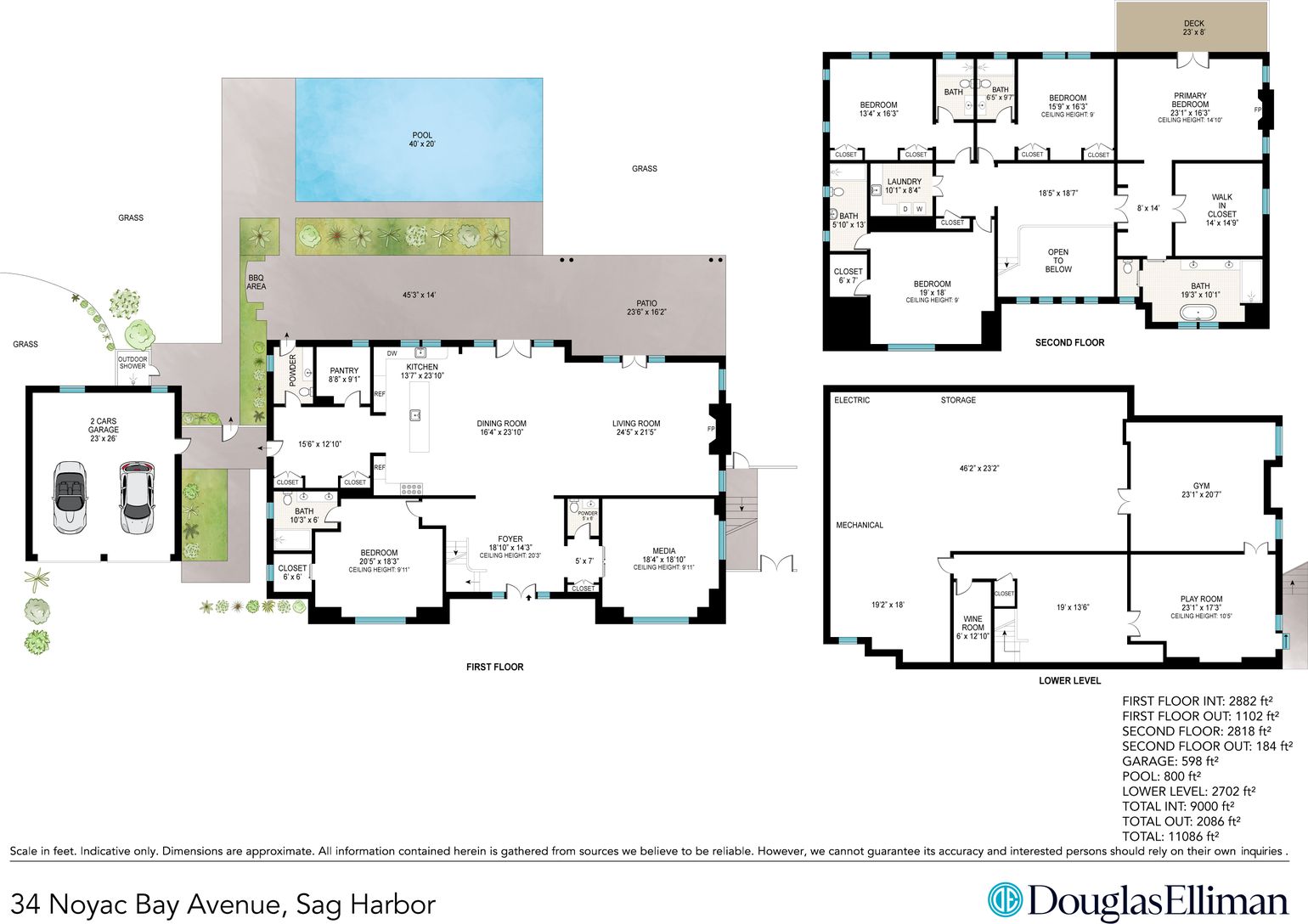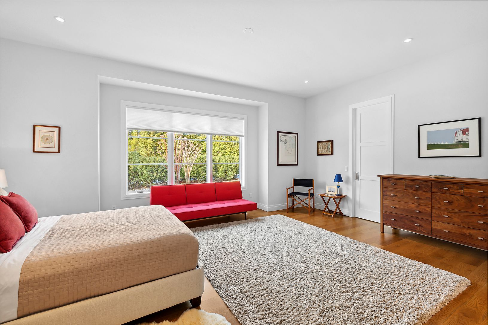 This equisite, 9,000 sf (under roof) tech-smart home with additional 2,086 sf (patio & decks) is in desirable, & picturesque Sag Harbor waterfront community with private beach, Clubhouse & Dock (accommodates upto 65' boat). Sited across from the Bay, this impeccably designed & gated home features 5 ensuite bedrooms, including a 1st floor junior master and spacious 2nd floor master suite with vaulted shiplap ceiling detail, fire
