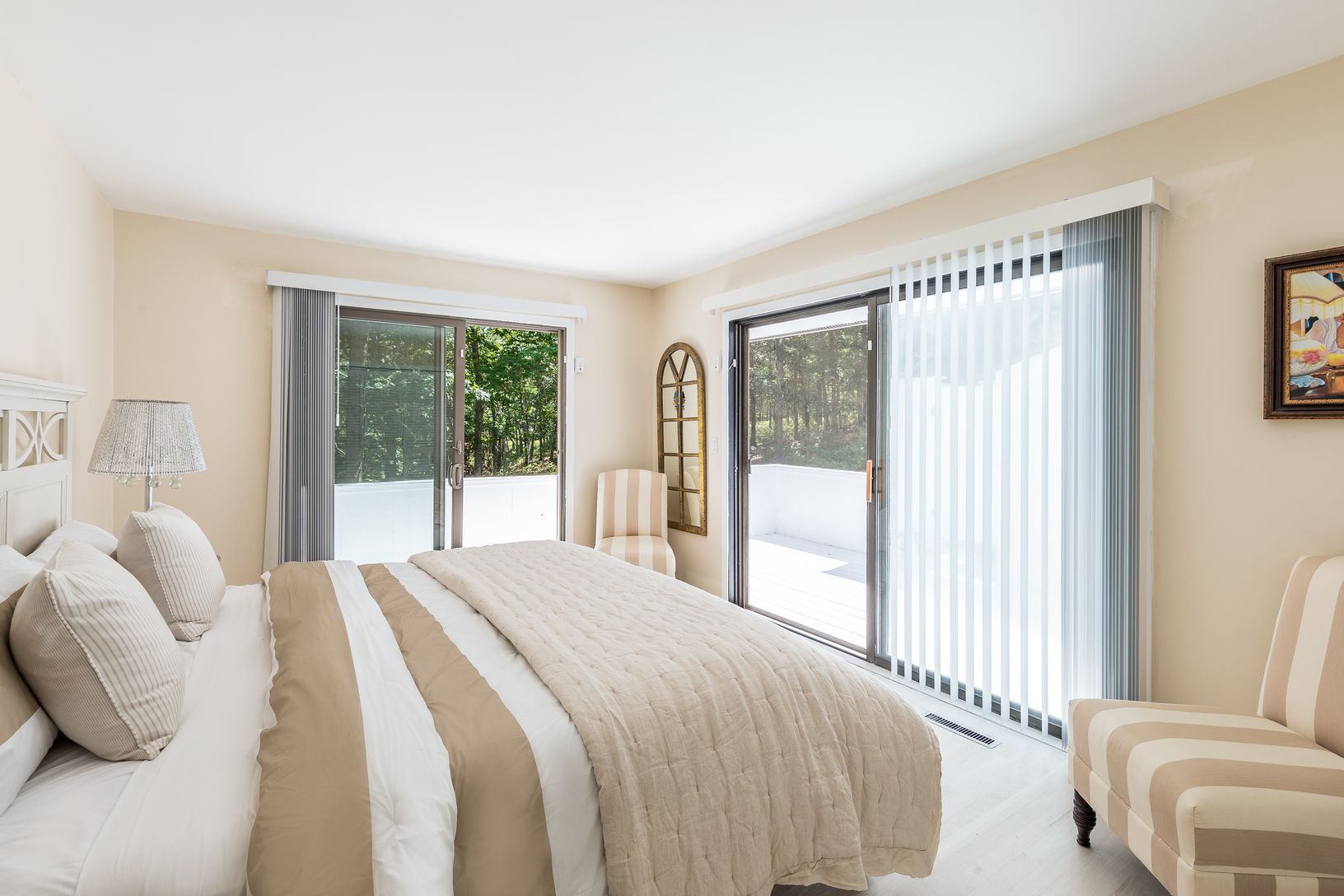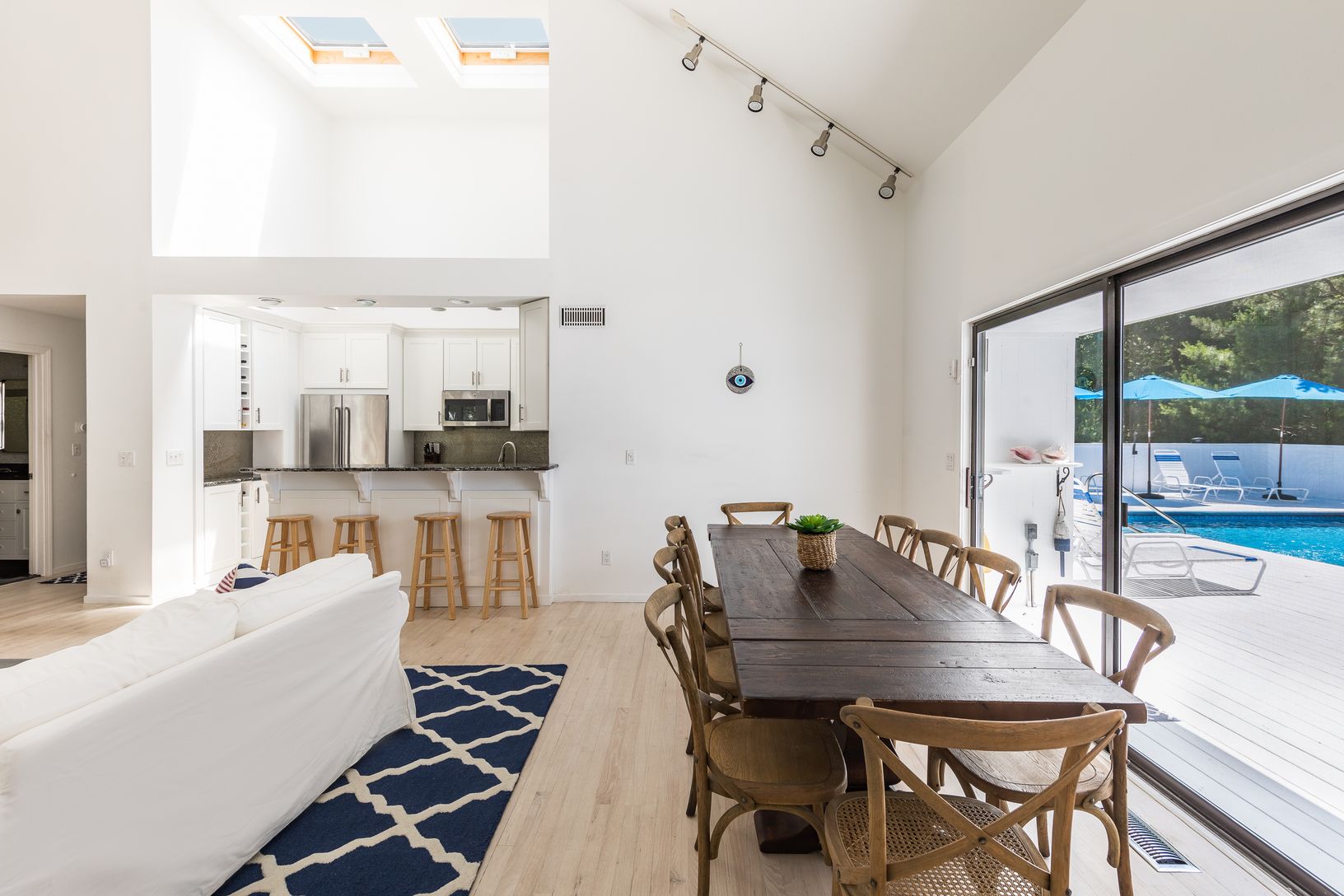 Located on a desirable cul-de-sac just minutes to the village sits this stylish contemporary home. The one-level home features four bedrooms, three bathrooms, a den (or 5th bedroom) and is designed for the modern lifestyle. The open living and dining room with soaring ceilings features a sleek gas fireplace, two sitting areas and glass doors and skylights that flood the space with natural light. The renovated kitchen offers stainless steel app
