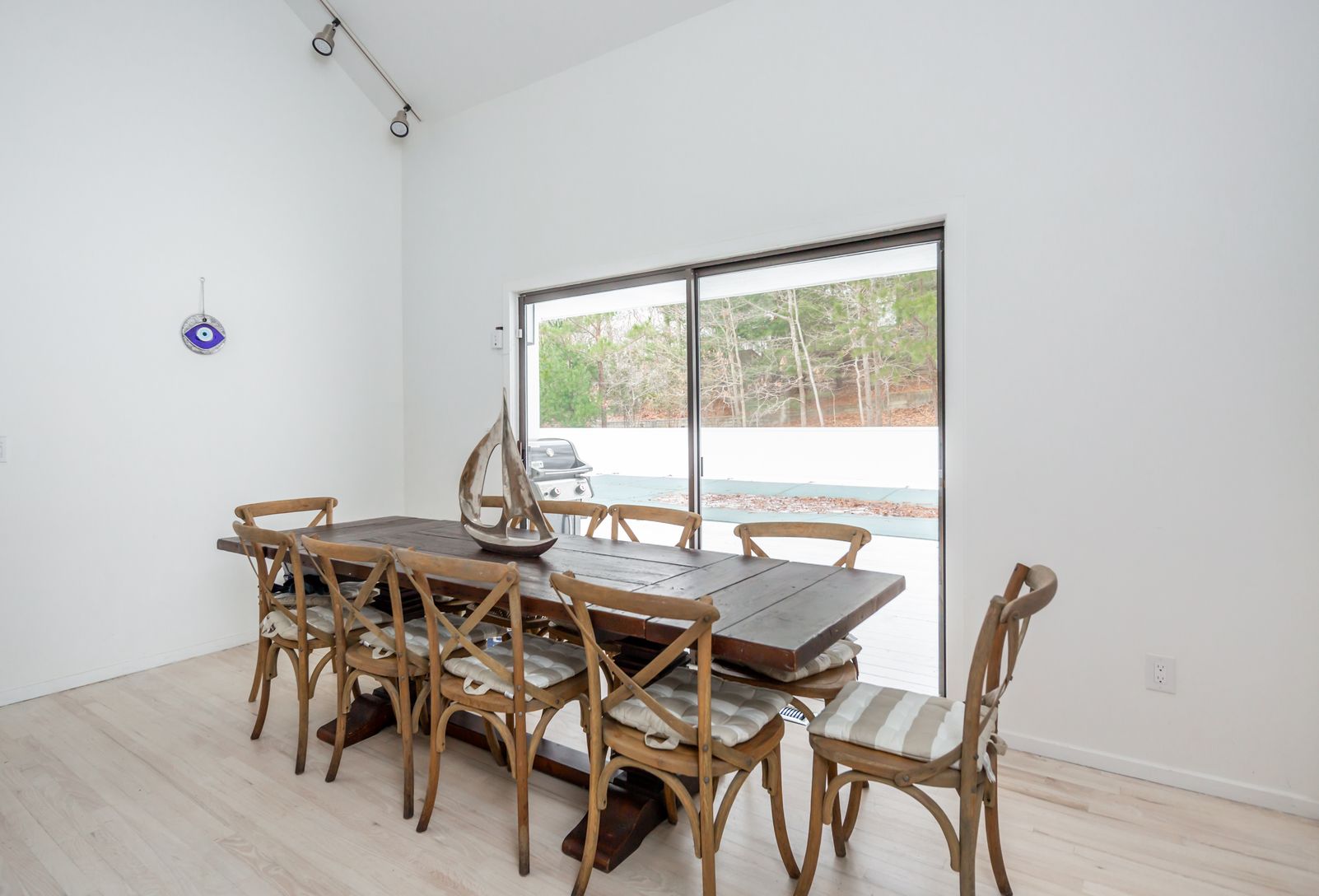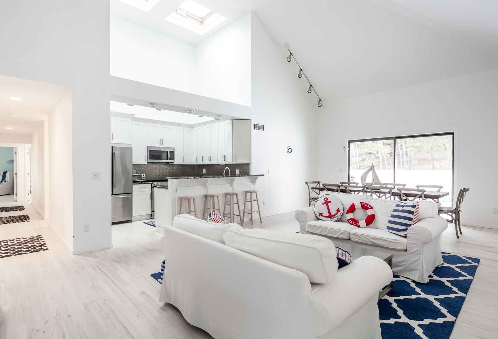 This newly renovated five bedroom, three bathroom house is located on a quiet, peaceful cul-de-sac, adjacent to 20 acres of nature preserve. Short distance to the harbor, Amagansett village or East Hampton village.
