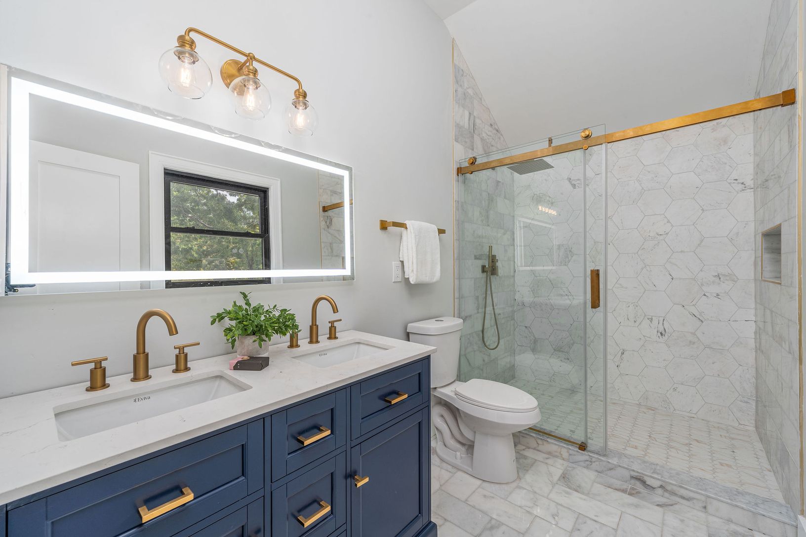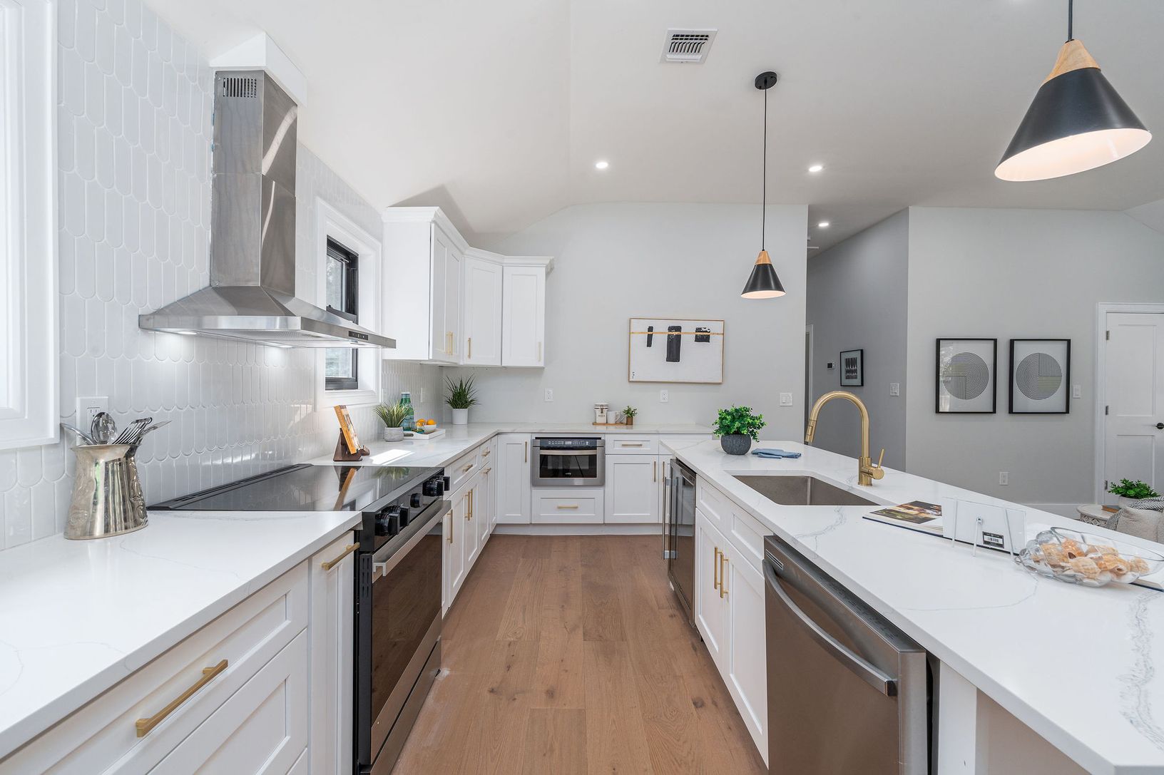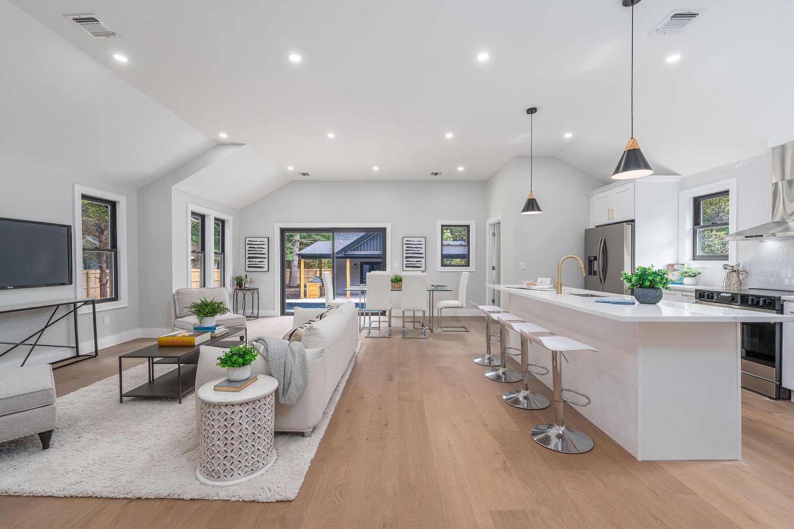 Complete renovation in 2025. This fully renovated 3-bedroom, 2.5-bath home offers 1,400 sq ft of modern living with soaring 10’ vaulted ceilings throughout. The primary suite features a walk-in closet and marble-tiled bath. A new high-efficiency Bosch electric central air and heating system, smart Alexa-ready lighting, sprinkler system, and all new WaterSense appliances ensure comfort and convenience. The kitchen includes a wine fridge, whil