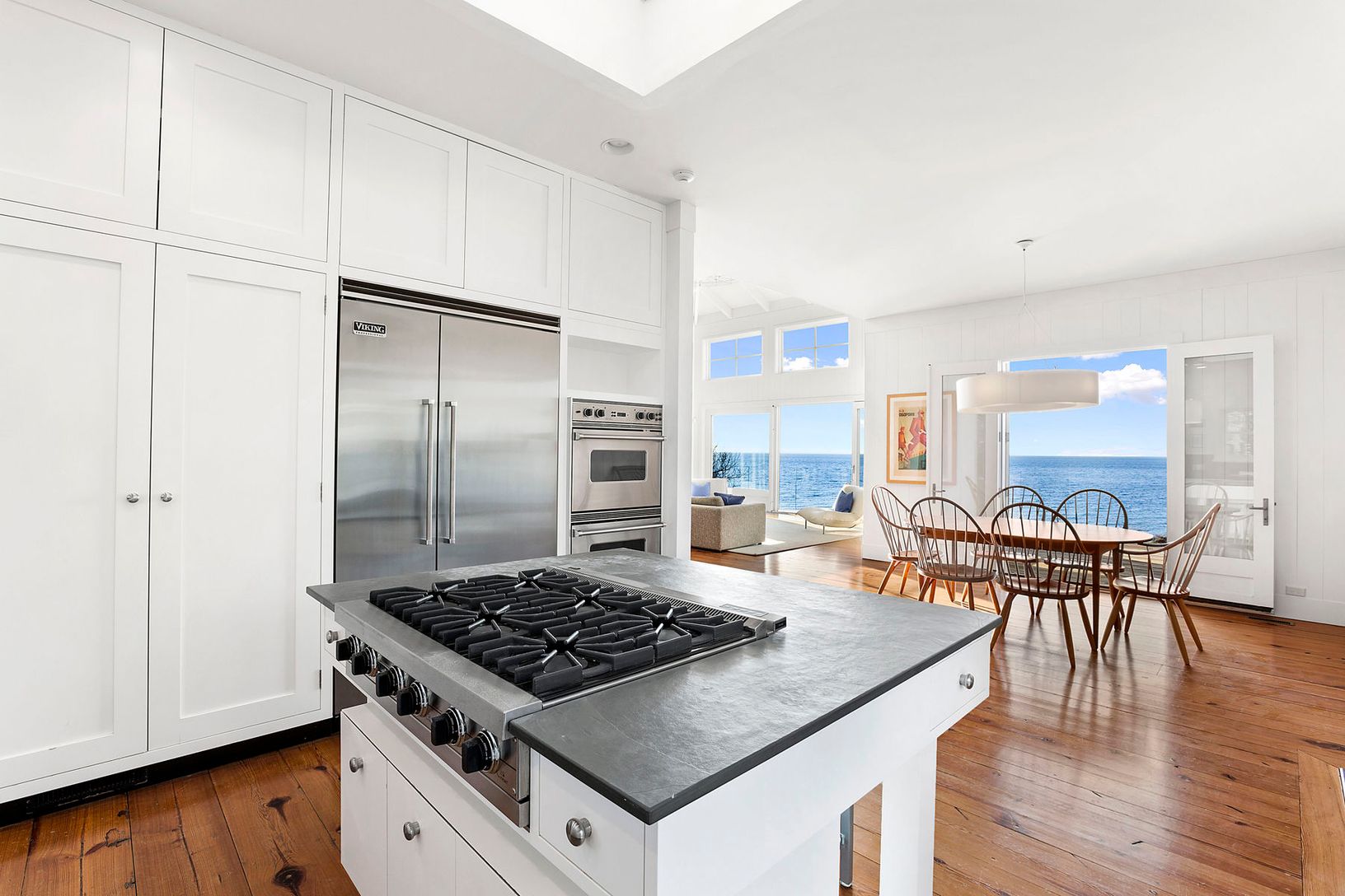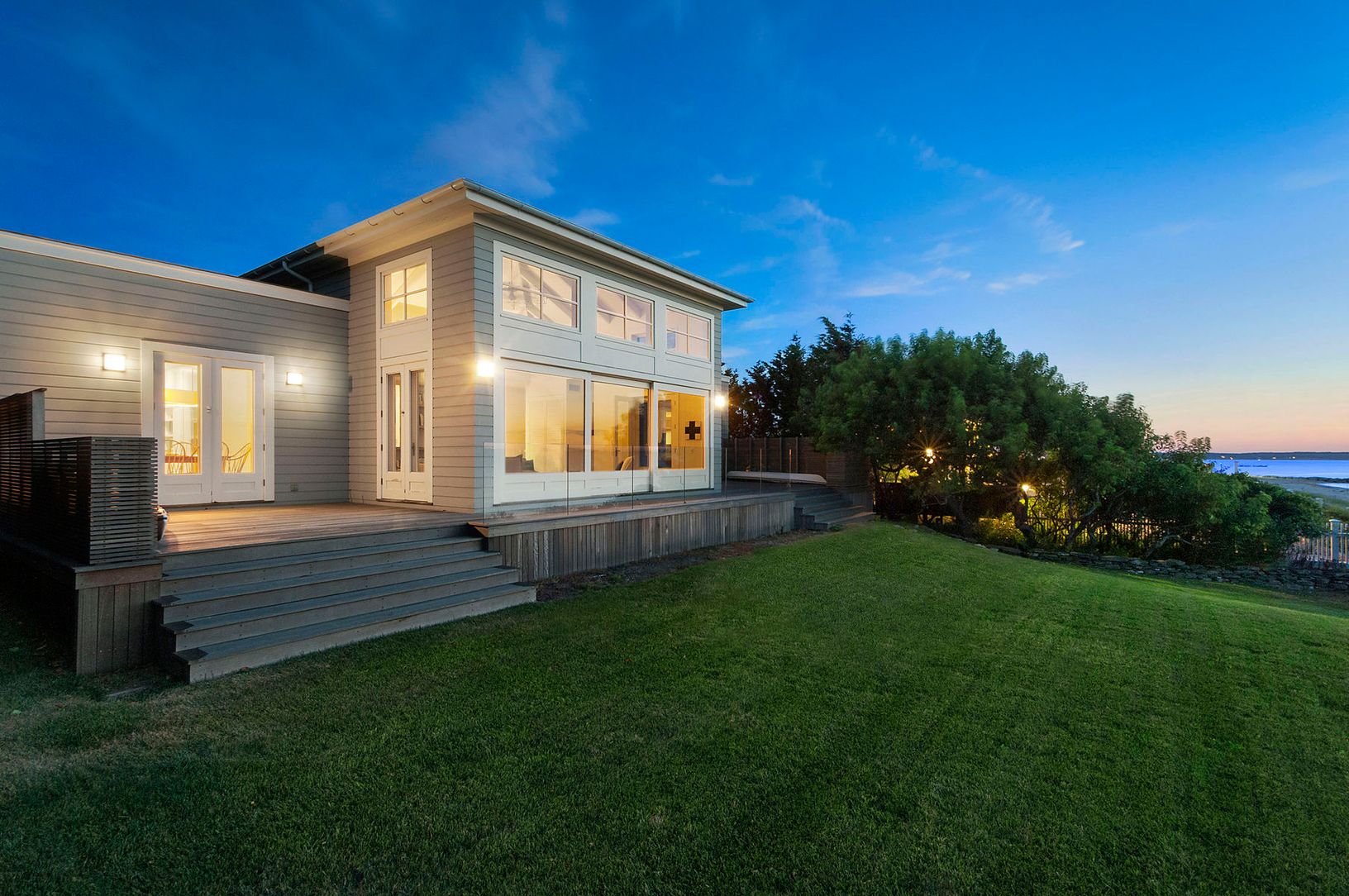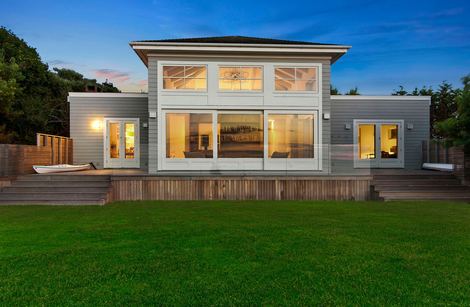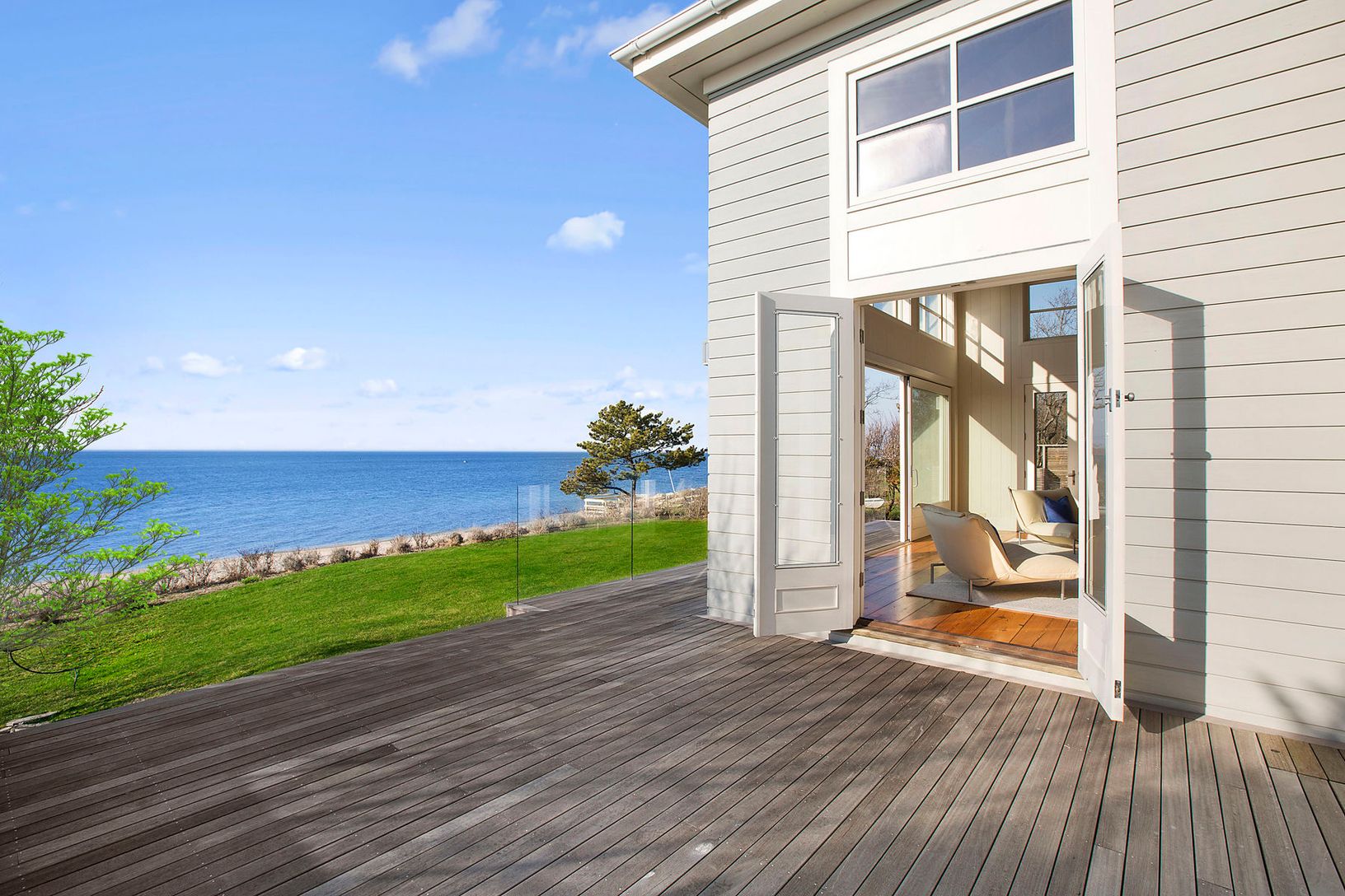 This waterfront home offers incredible unobstructed panoramic views of Gardiner's bay from the moment you step in. This beautifully laid out beach house was designed by local architect Fred Lambaise, with interior spaces that are perfect for entertaining. With over 4,200 square feet, there are 4 bedrooms and 3 and a half baths. The living room features 22 foot ceilings and is perfect for enjoying incredible sunsets over the water with its many