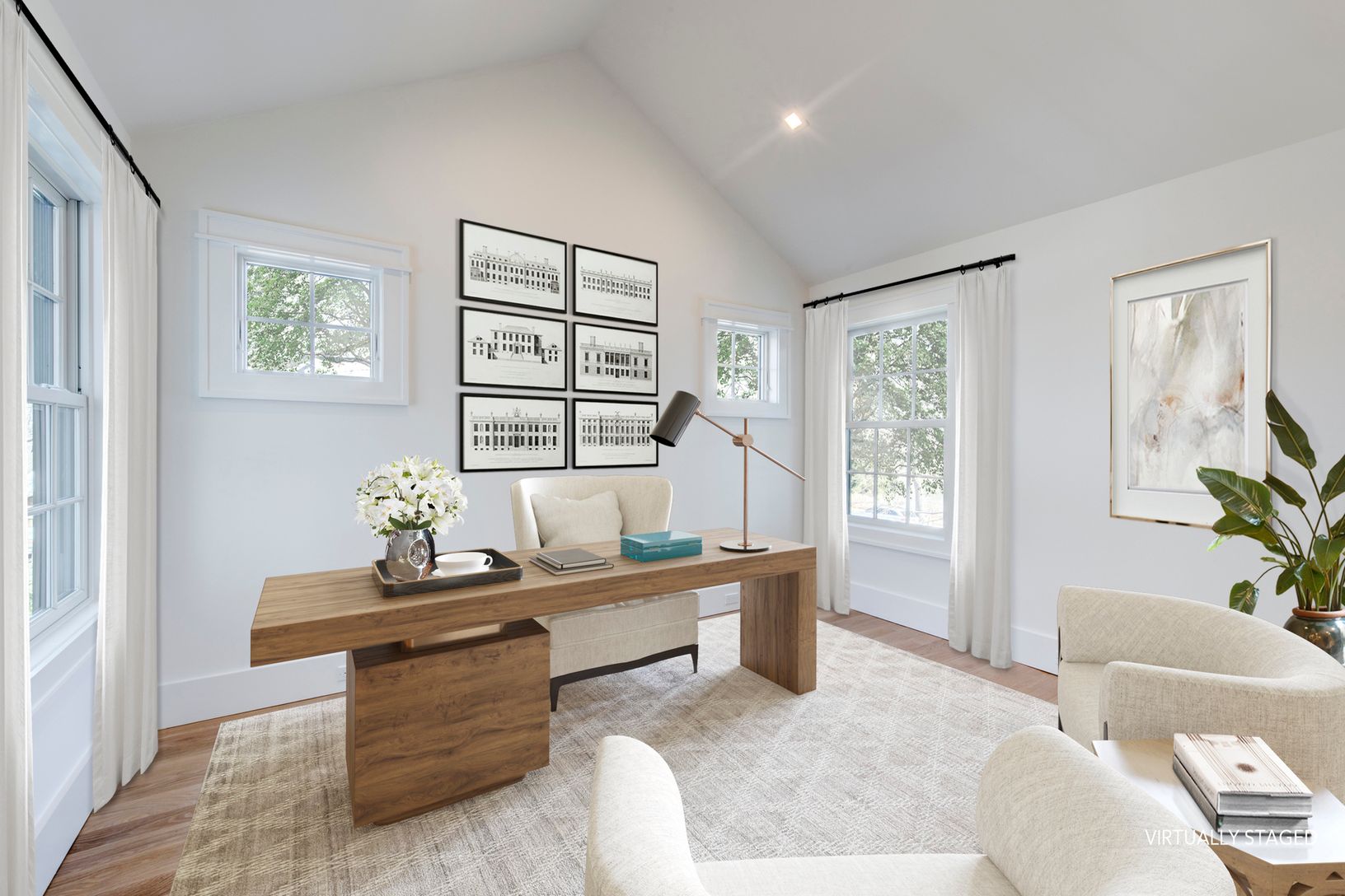 With a picturesque setting across from Otter Pond, this 4100 +/- sq ft, 5 bedroom, 4 full and 2 half bath home features an open plan Great Room living room with gas fireplace, dining space and a custom chef's kitchen with professional appliances all overlooking the pond.