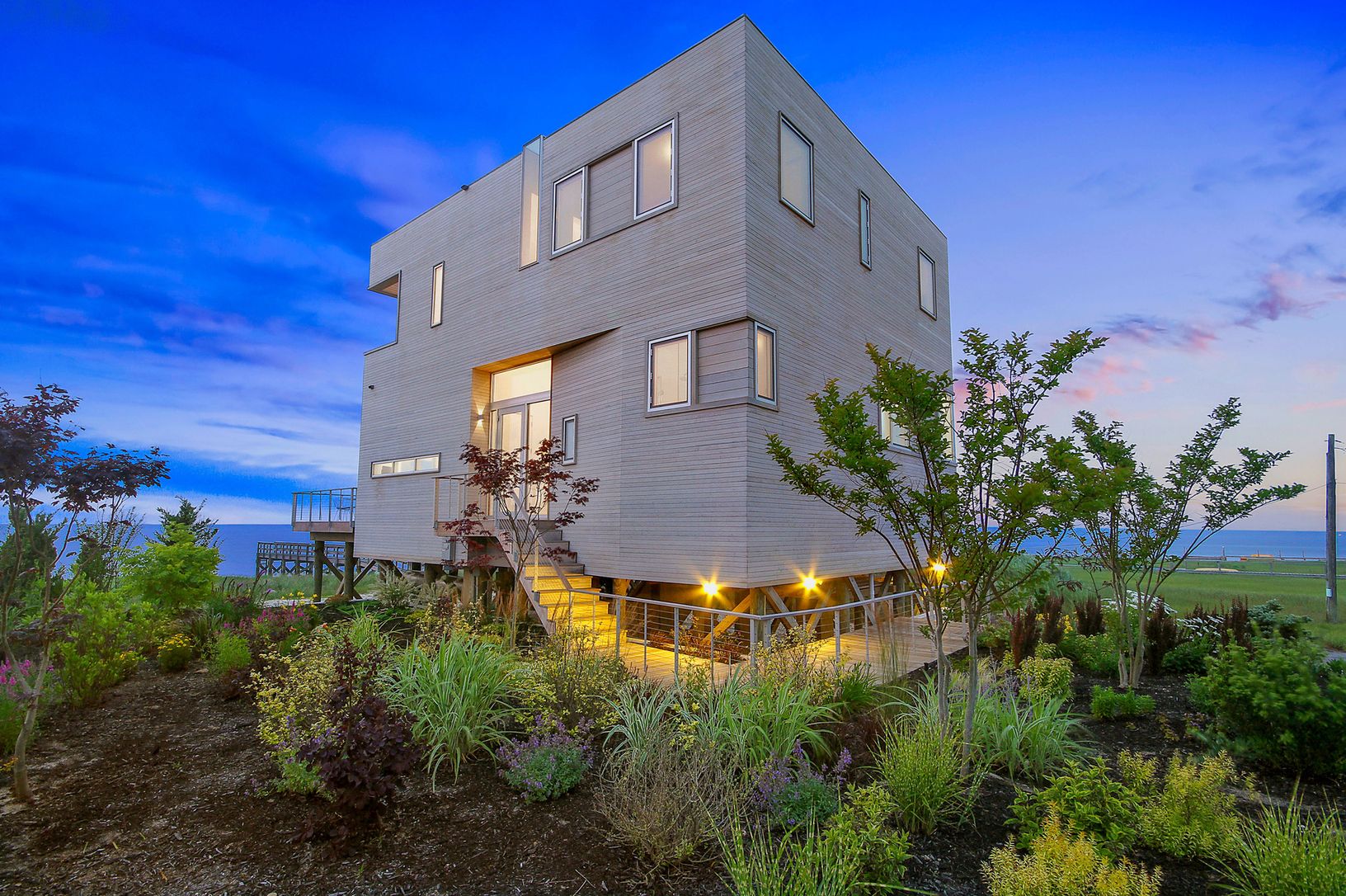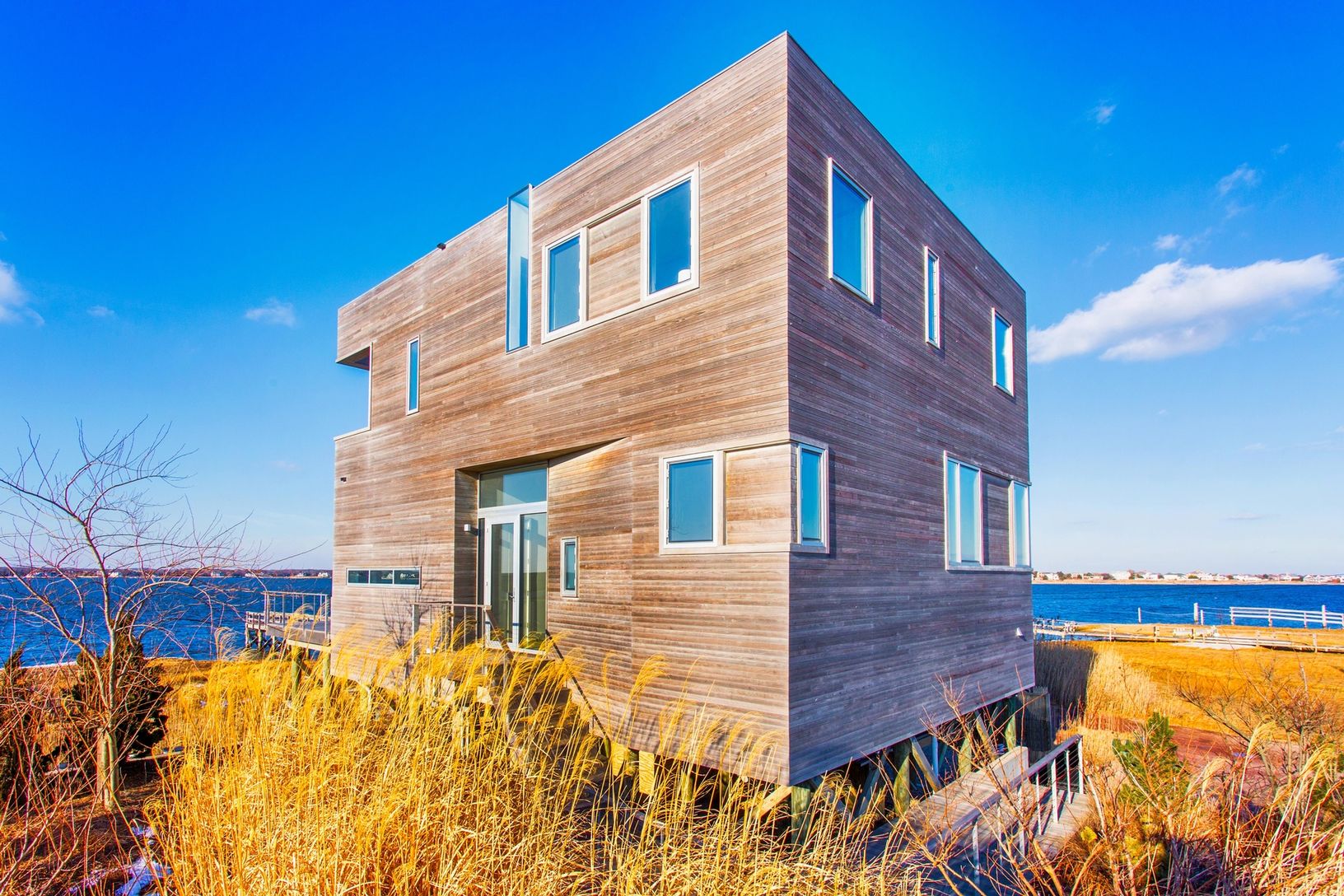 Imagine endless Bayfront views from a modern home designed by award winning Leroy Street Studio Architecture of NYC. "The Cube" was completed in 2013 and has since been written about and even televised all over the world. Set upon +/- 3/4 of acres of Bayfront Property, The Cube leaves you feeling like your living above water. After entering this modern masterpiece you will first find an open floor plan consisting of your dining area which flow