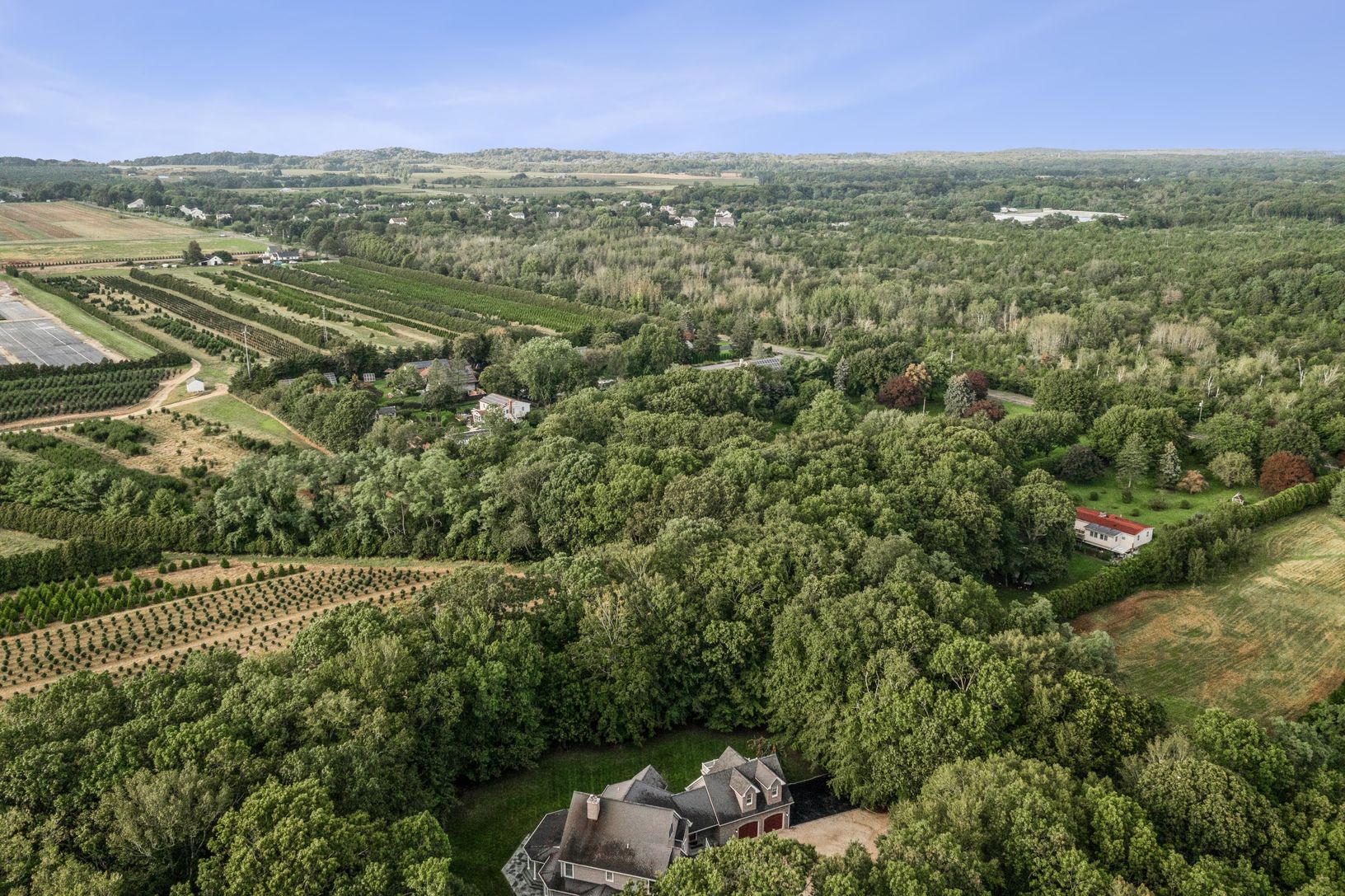 Exceptional North Fork home nestled among farmland, surrounded by +3 wooded private acres. Open floor plan in foyer, living room, and formal dining room overlooking the expansive covered patio. A gas fireplace for cozy nights completes the entertaining space. The gourmet kitchen with center island, pantry & radiant heat, finishes off the great room. Impressive 1st-floor Primary suite, radiant heat & generous walk-in closet. Additional