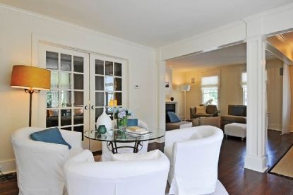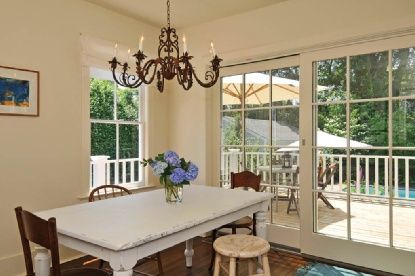 Beautifully renovated 1892 Sag Harbor Village classic with vintage charm offers living room with gas fireplace, parlor/dining room with built-in banquet/daybed, state-of-the-art designed eat-in kitchen with Carrera marble countertops, Viking and Sub-Zero appliances, washer/dryer, stainless steel and wood cabinetry, 3 bedrooms (each with bath), including a master with beamed cathedral ceiling, 3.5 baths, front porch, rear deck, outdoor shower a