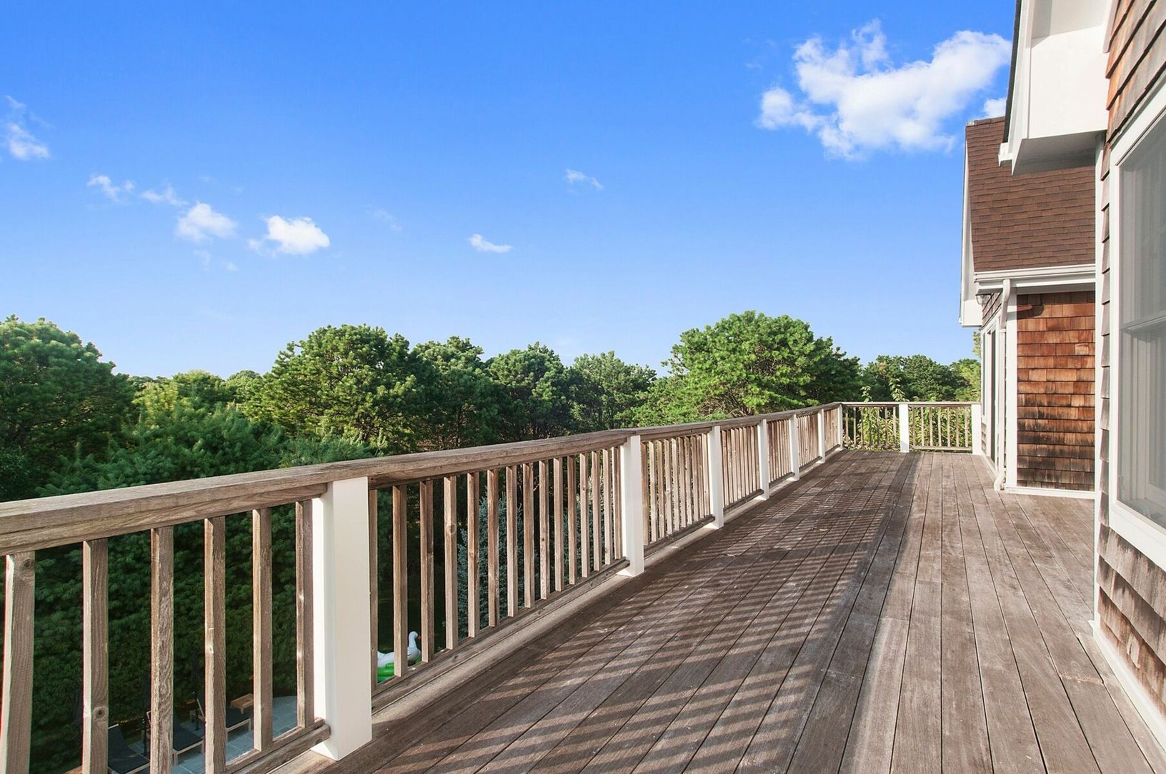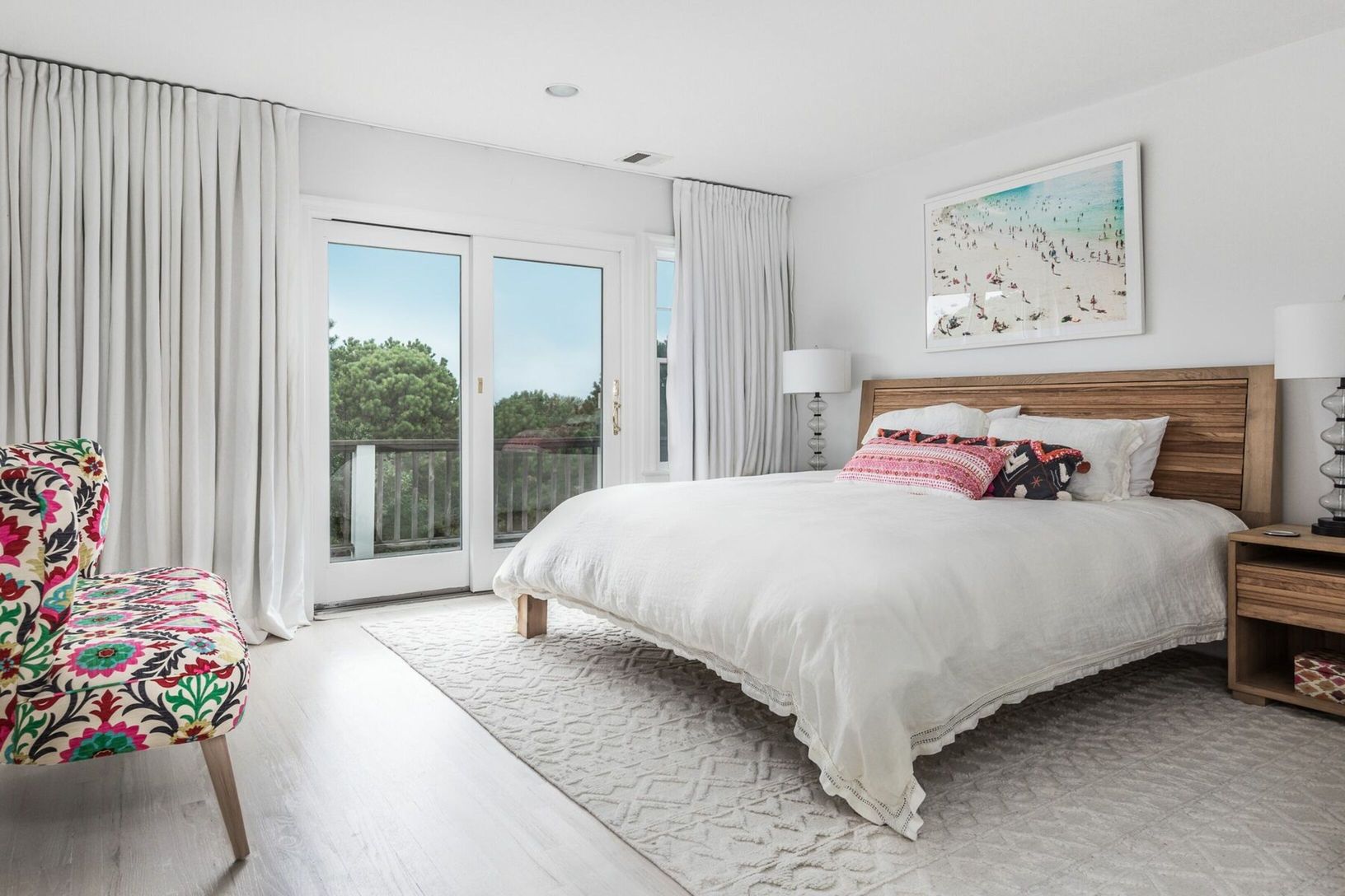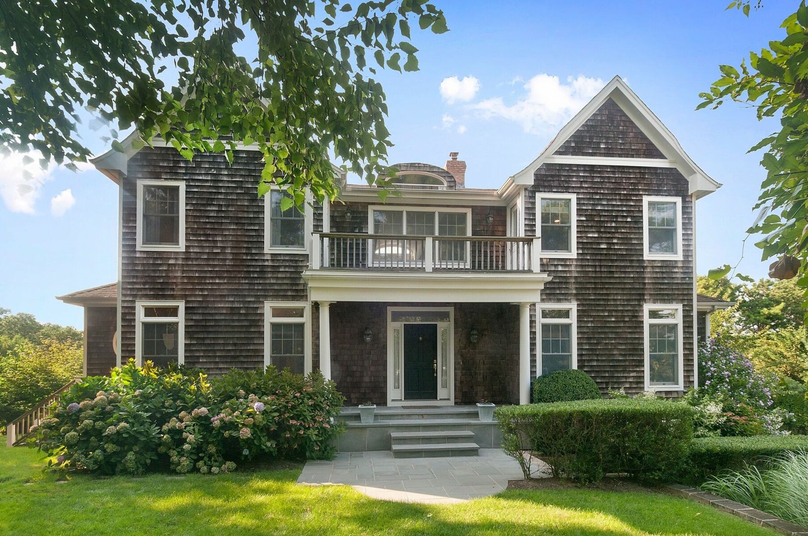 Set on your private acre, enjoy this fully renovated three-level Post Modern home, just minutes to Southampton Village and ocean beaches. Complete with five beautifully decorated bedrooms, and five and one half updated baths, this property has all of the amenities desired for today's discerning renters. Enter the open and airy great room, with a balcony overlooking the vast grounds and lush landscaping. Large first-floor primary suite, state-o