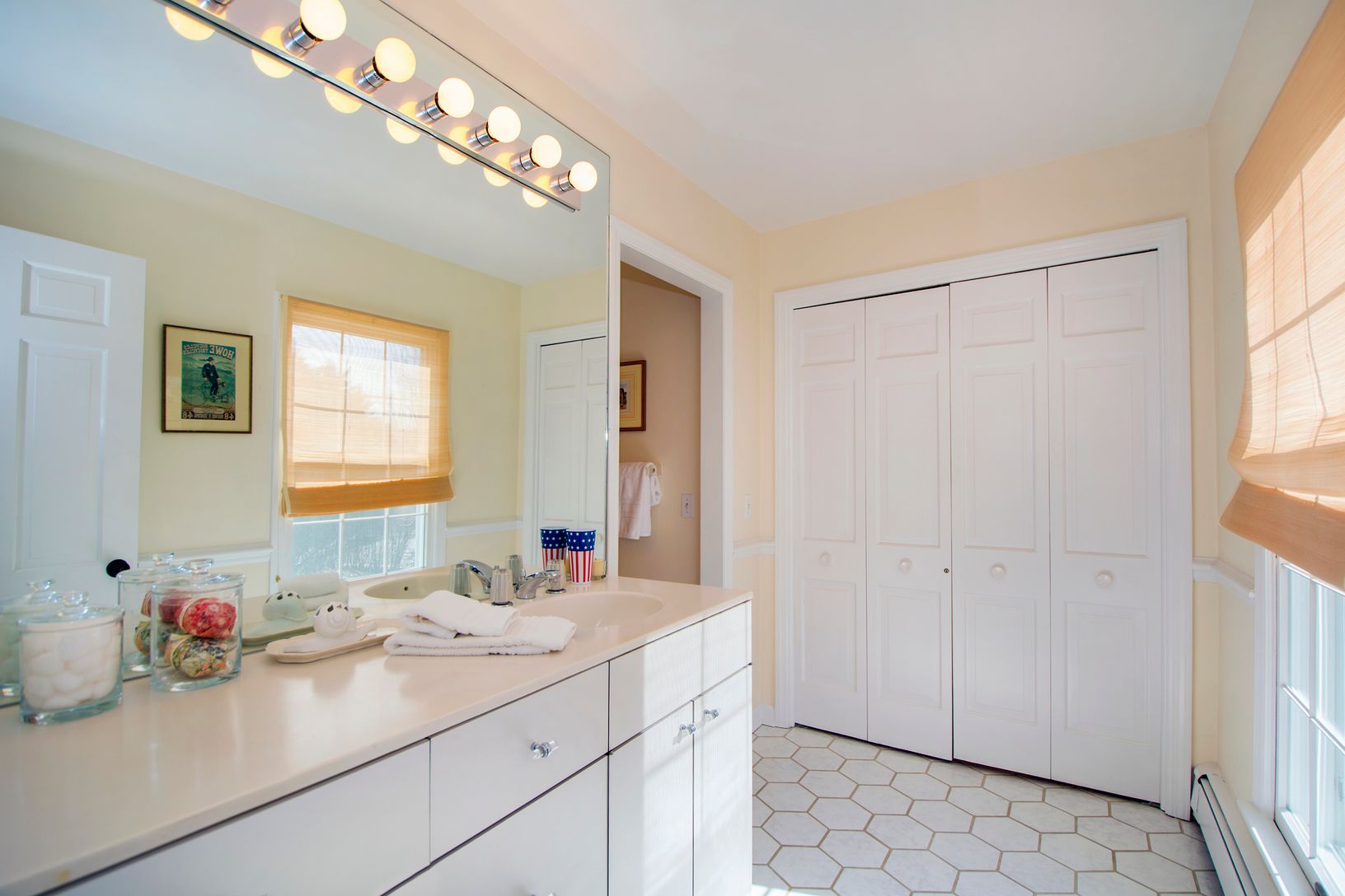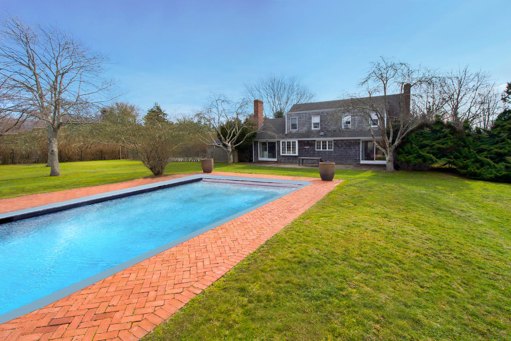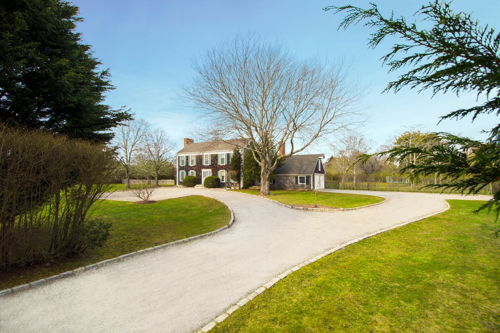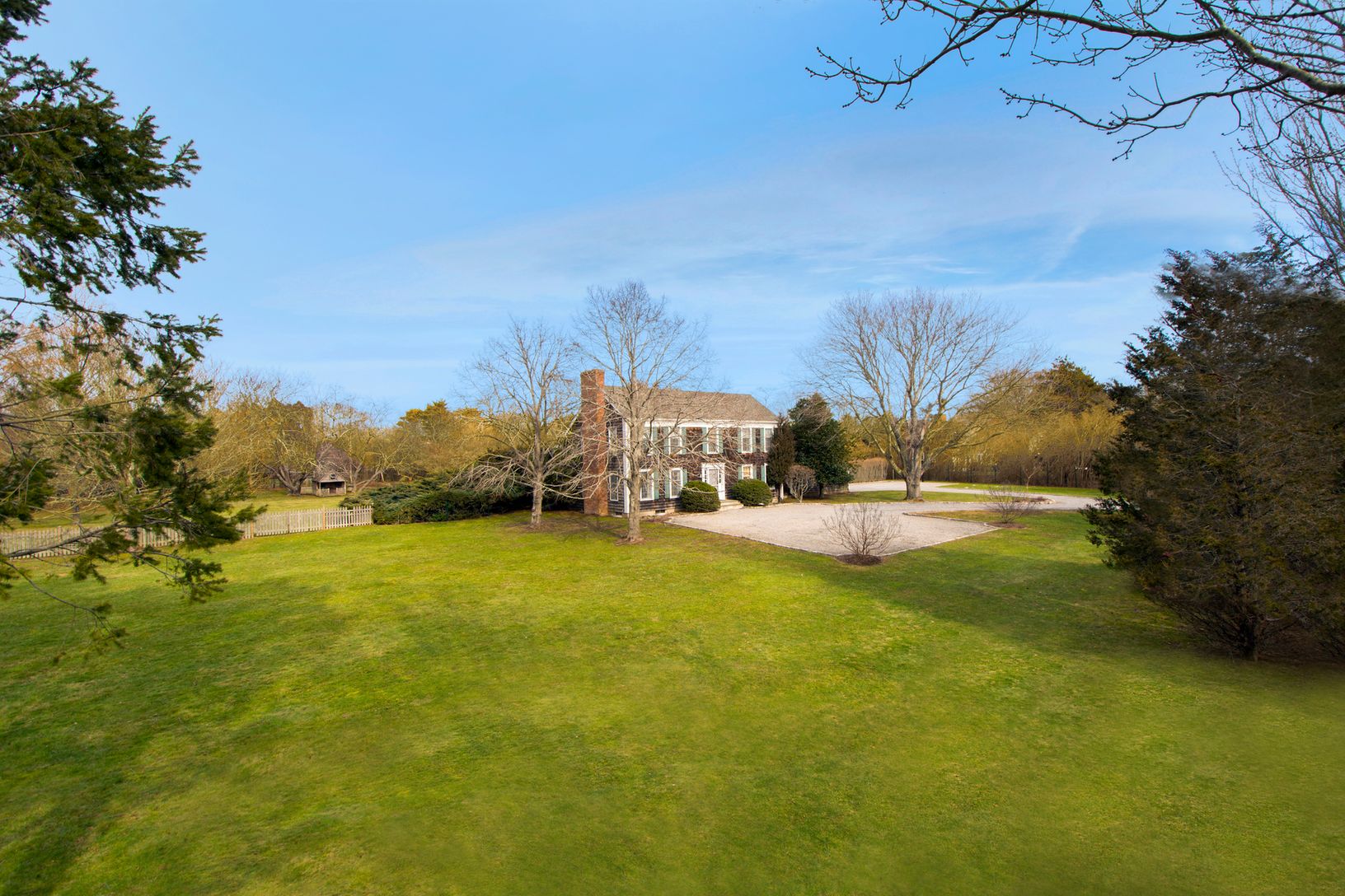 On almost two acres on prized Down East Lane in Southampton Estate Section, with 40'x20' Gunite pool, this colonial-style wood-shingled residence can be renovated and expanded, or can be built new. The present residence retains a classic floor plan, including center star, wide-plank wood floors, a library, first floor full bath, living room with fireplace and open flow to the dining area that opens onto a rear patio. The kitchen will all appli