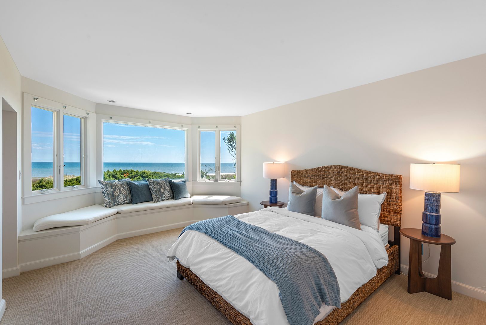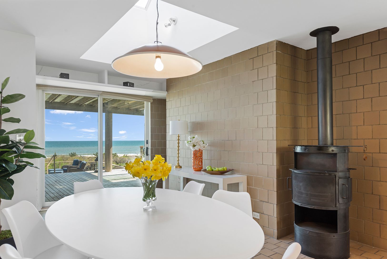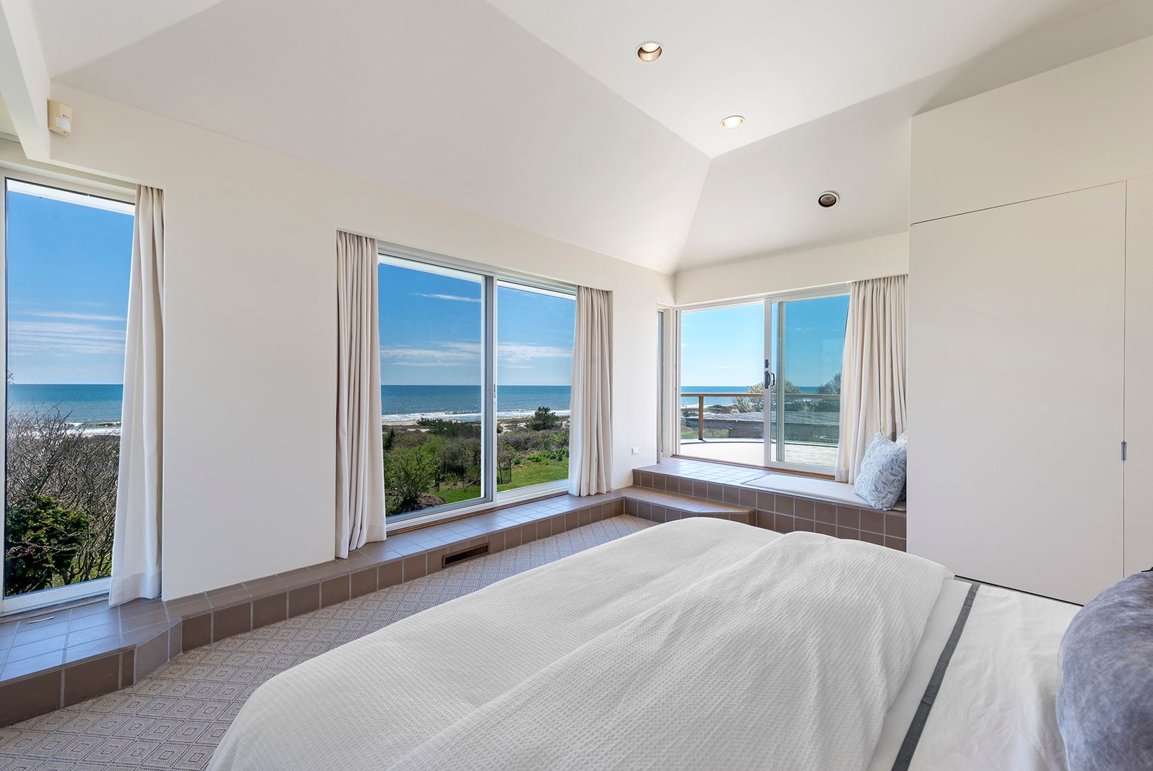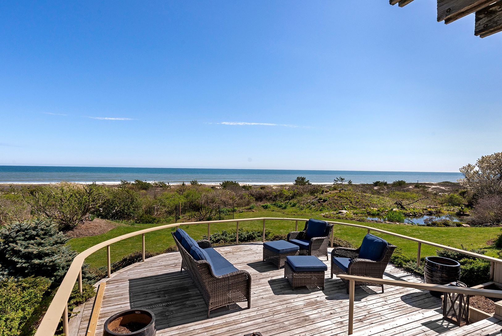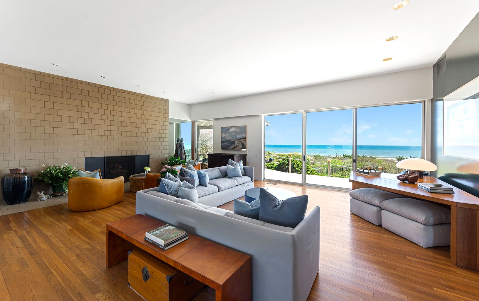 Sited between Egypt and Wiborg beaches, this newly decorated oceanfront beach house enjoys one of the best locations in East Hampton. Commanding views throughout, with 135' ocean frontage on 1.46+/- private acres. The residence is a showcase of refined aesthetics and architectural grace as featured in the 1981 issue of Architectural Digest. With spectacular views throughout, it provides 4 bedrooms and 5.5 baths. Common rooms include a large li