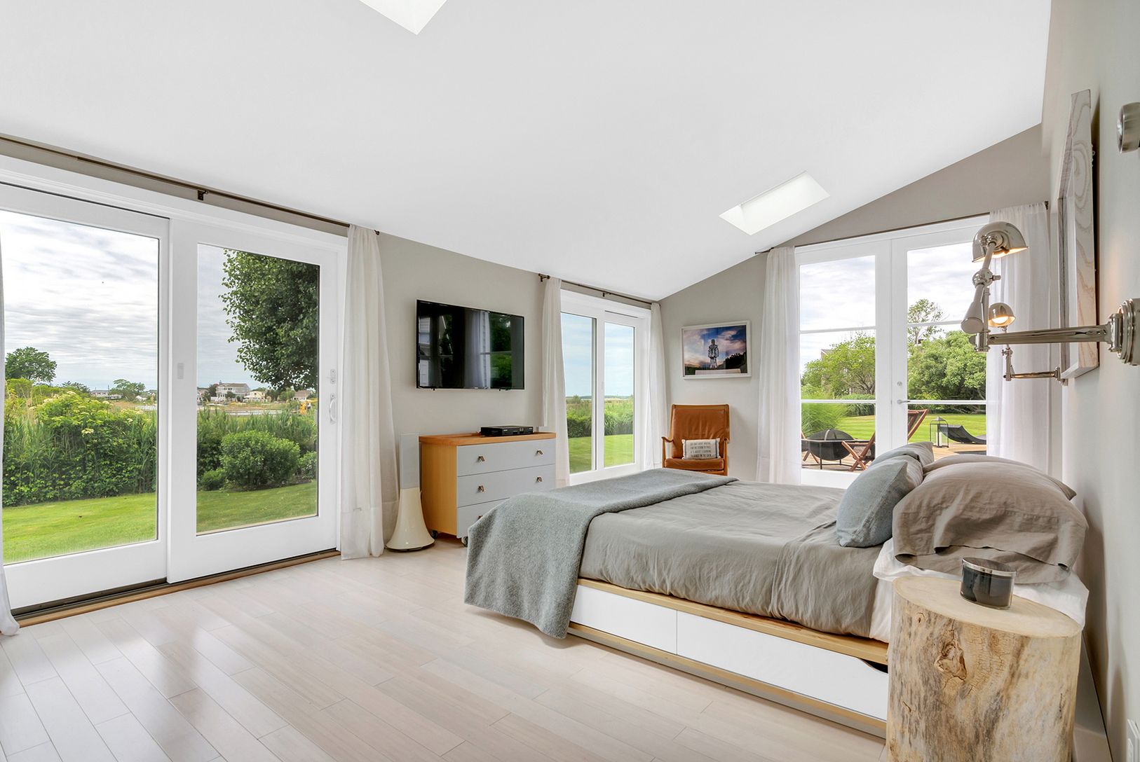 Freshly renovated 4-bedroom Southampton waterfront home, situated on nearly 2 landscaped acres with heated Gunite pool and a private dock, boasts sweeping views and spectacular west exposure with magnificent sunsets over Peconic Bay.