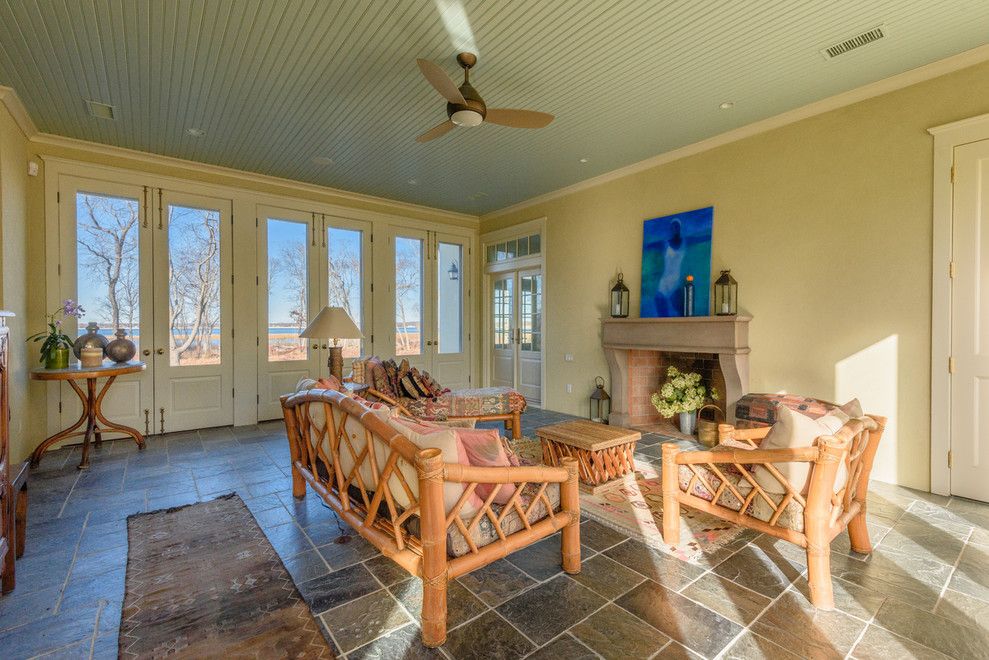 Unlike any other location, boasting over 400' of sunset-soaked waterfront on just under 2 acres.The gated, 7400SF home features spectacular water views from almost every room of the house. There are 5 bedrooms, including a large master suite with adjoining sitting room/office, formal living room with fireplace, parlor, formal dining room, and custom eat-in kitchen with large pantry. Gorgeous entertaining spaces include a large atrium with fir