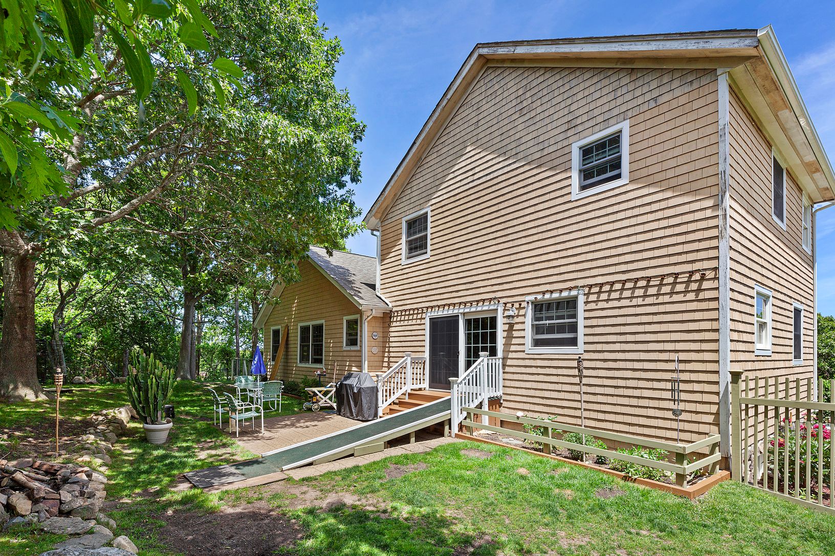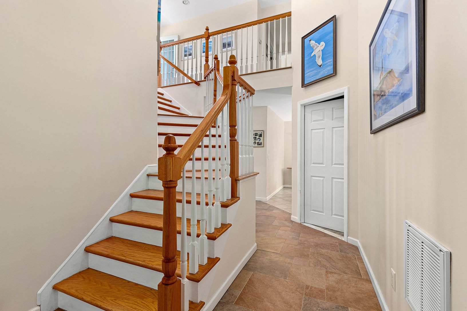 Perched high on a hill this 4 bedroom 3 bath house offers complete privacy and a quiet Cul-de-Sac location. The expansive kitchen provides a breakfast nook overlooking the gardens outside, beautiful wood cabinets, stainless appliances and granite countertops. Along side this there is a spacious dining room with sliding doors which open to the patio. Two bedrooms and one bath are on the first floor with the third and master bedroom on the se