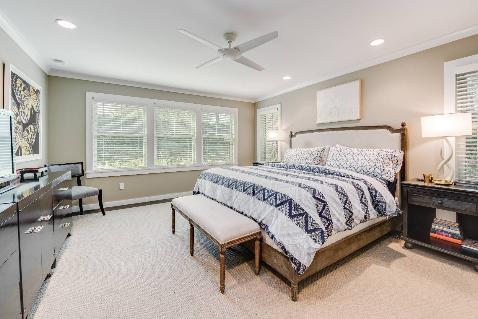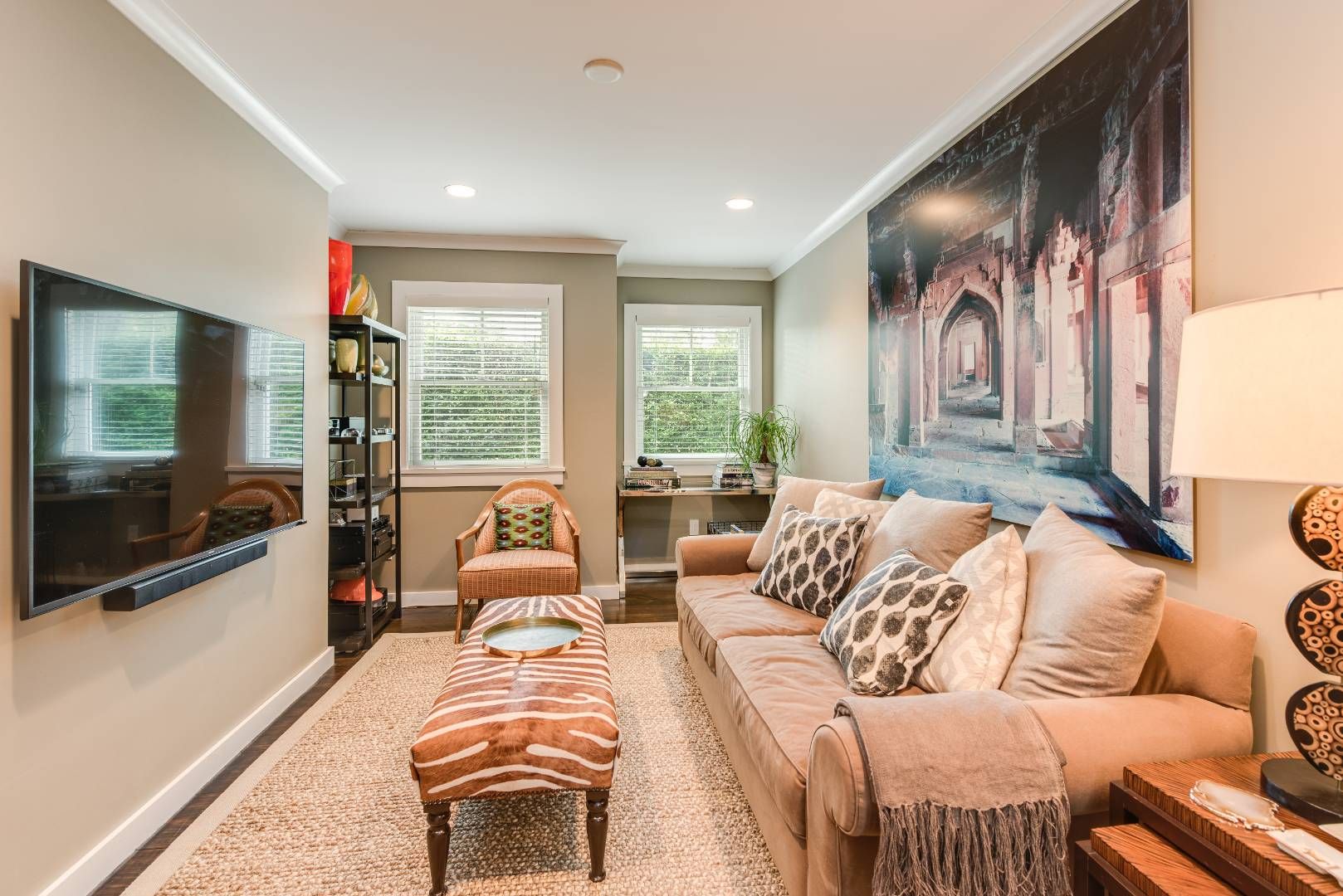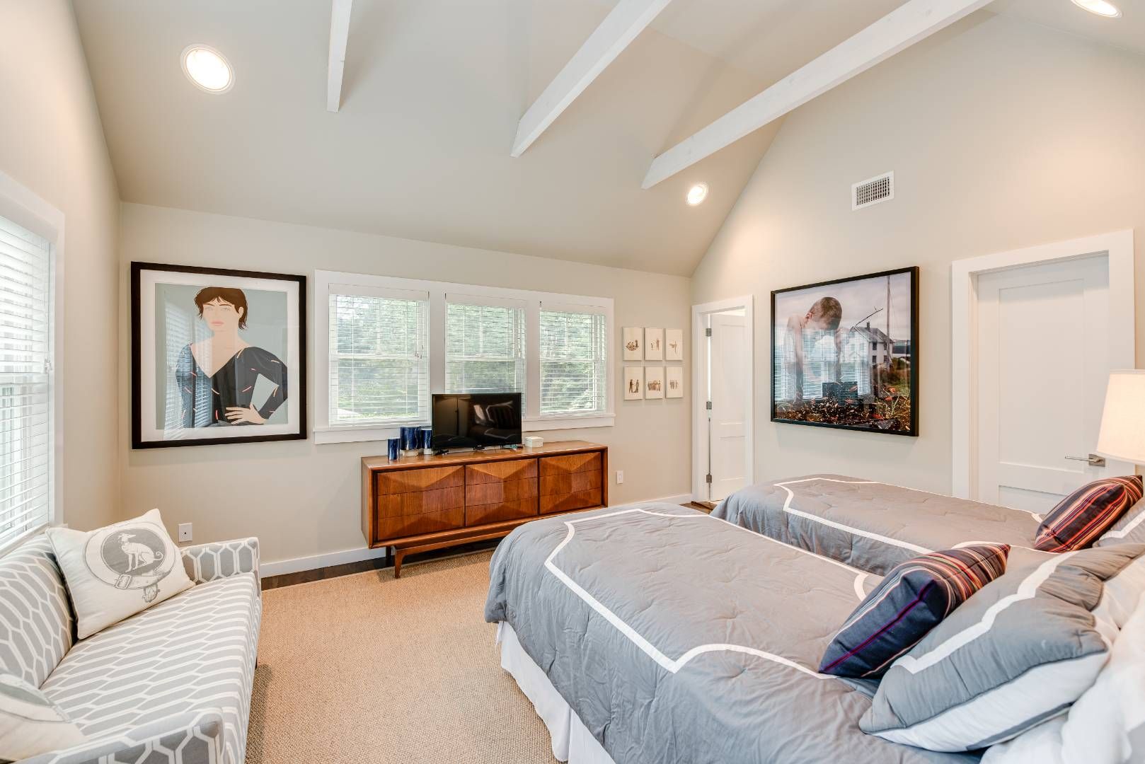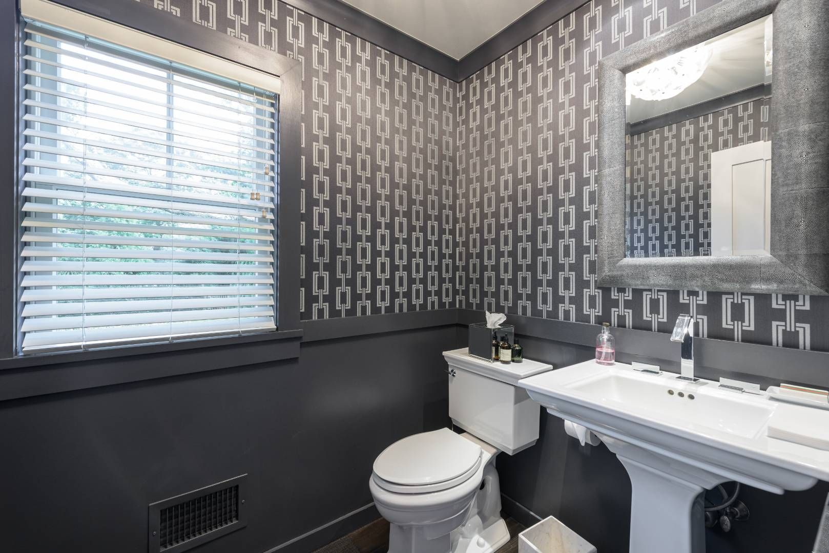 Set well back from the road on a quiet street, discover this stylish two-story home with three bedrooms and three and a half baths. The .4+/- acre property abuts a 16 acre agricultural reserve and is lined with mature landscaping for ultimate privacy. Light-filled first floor living areas flow among the living room with fieldstone fireplace, den with pocket door, dining area and chic black and white kitchen with quartz countertops, marble back