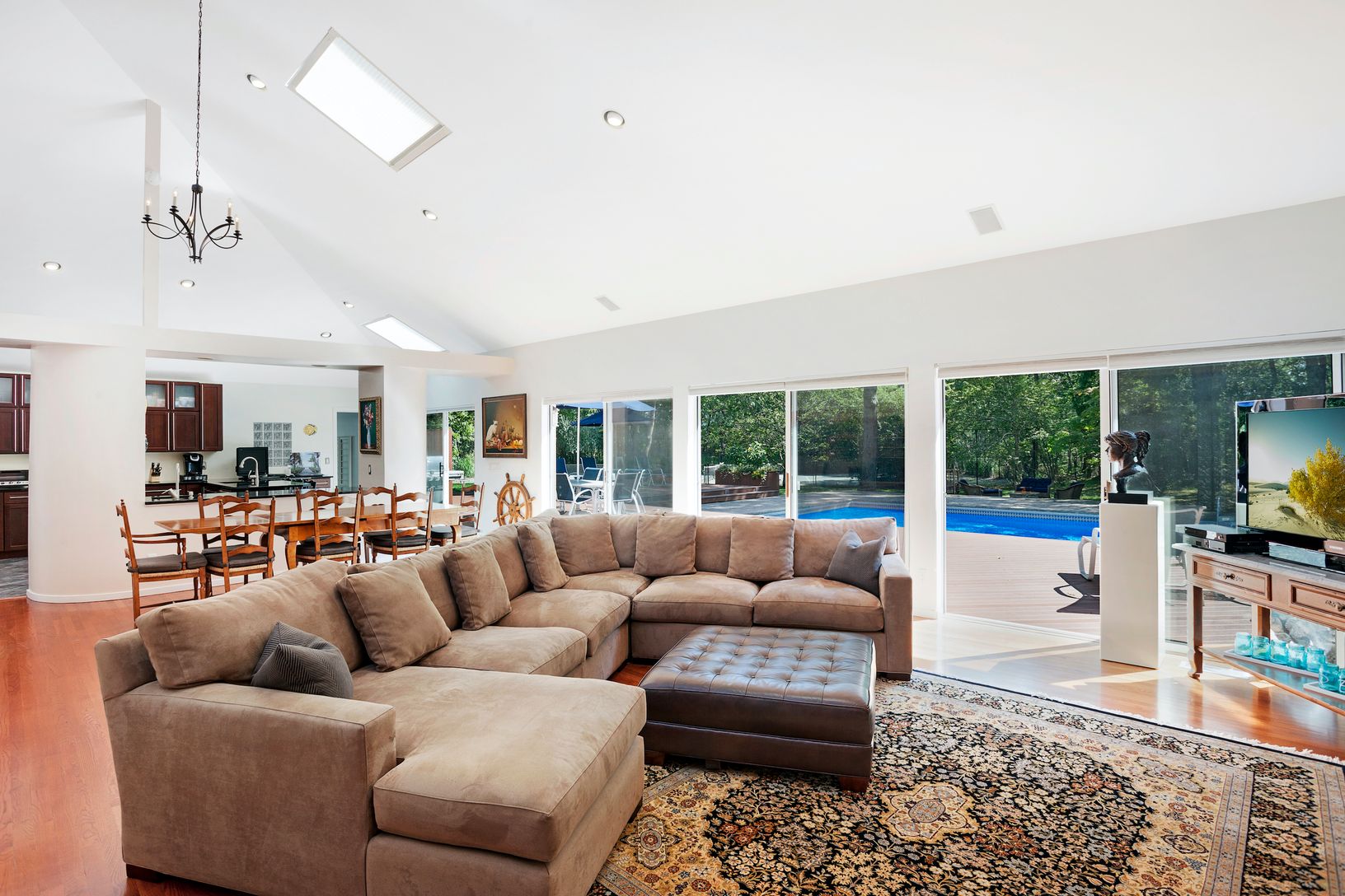 A spacious and sun filled contemporary offering vaulted ceilings, island kitchen with stainless steel appliances and granite countertops, 7-bedrooms including a first floor master with privacy deck, large deck, with 20x40 pool, har-tru tennis court, and much more. A must see!