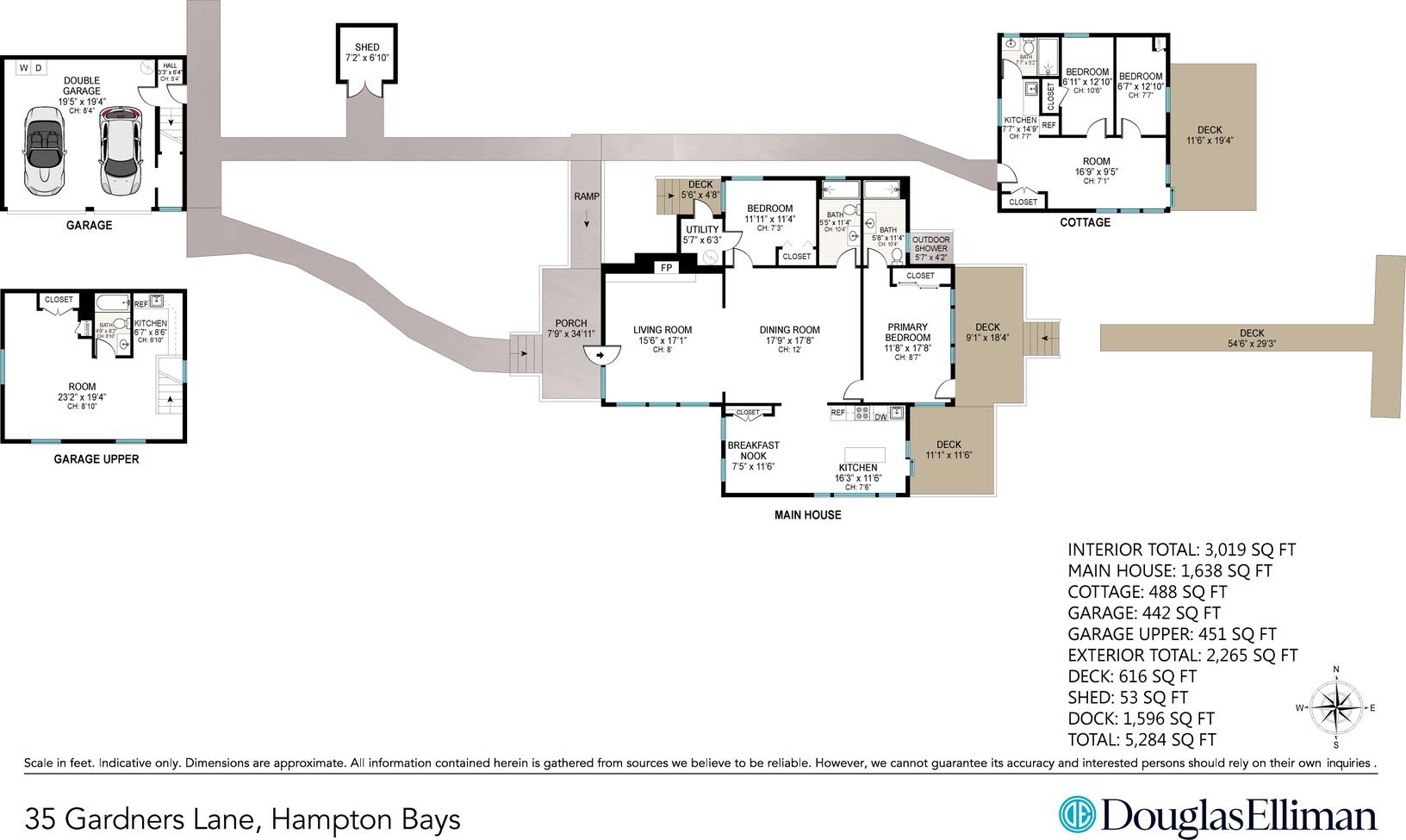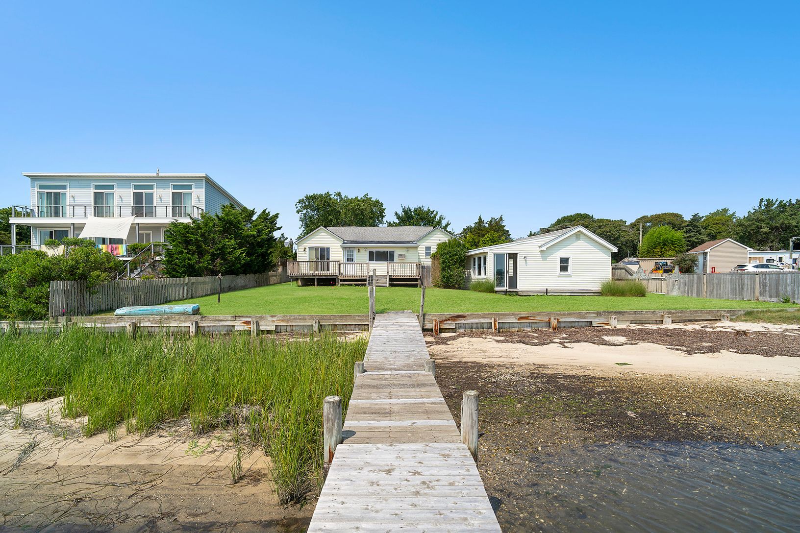 Create your own slice of Heaven in the Hamptons! Waterfront Hampton Bays gem provides a serene paradise with stunning views of the Shinnecock Bay and 80 feet of waterfront, with a 40-foot dock and sandy beach. Offered with architectural plans and approvals in place to renovate the property's existing structures to craft your own custom beach house, along with a separate guest cottage and 18-foot-by-36-foot gunite pool. The 2-bedroom, 2-bath ma