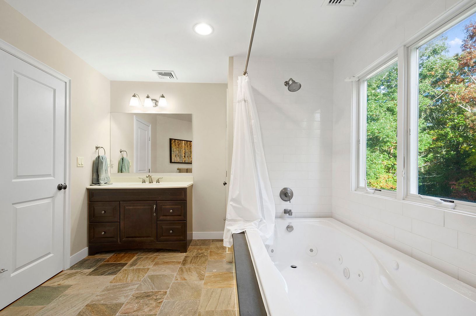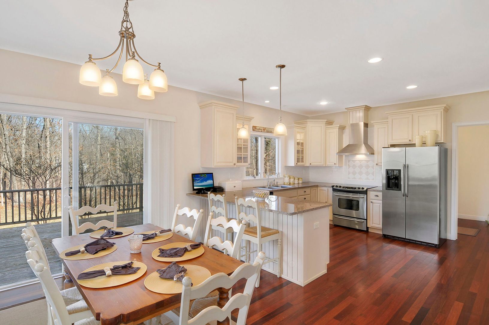 This East Hampton turn-key traditional was built in 2009 by Score Construction and is found on one of East Hamptons most family friendly quiet streets. Offering a great layout with open living spaces, there is a terrific new eat-in kitchen and spacious dining area leading to the backyard. The master bedroom has a lofted ceiling with a large walk-in closet and ensuite bathroom. There are three additional guest bedrooms and two other large bath