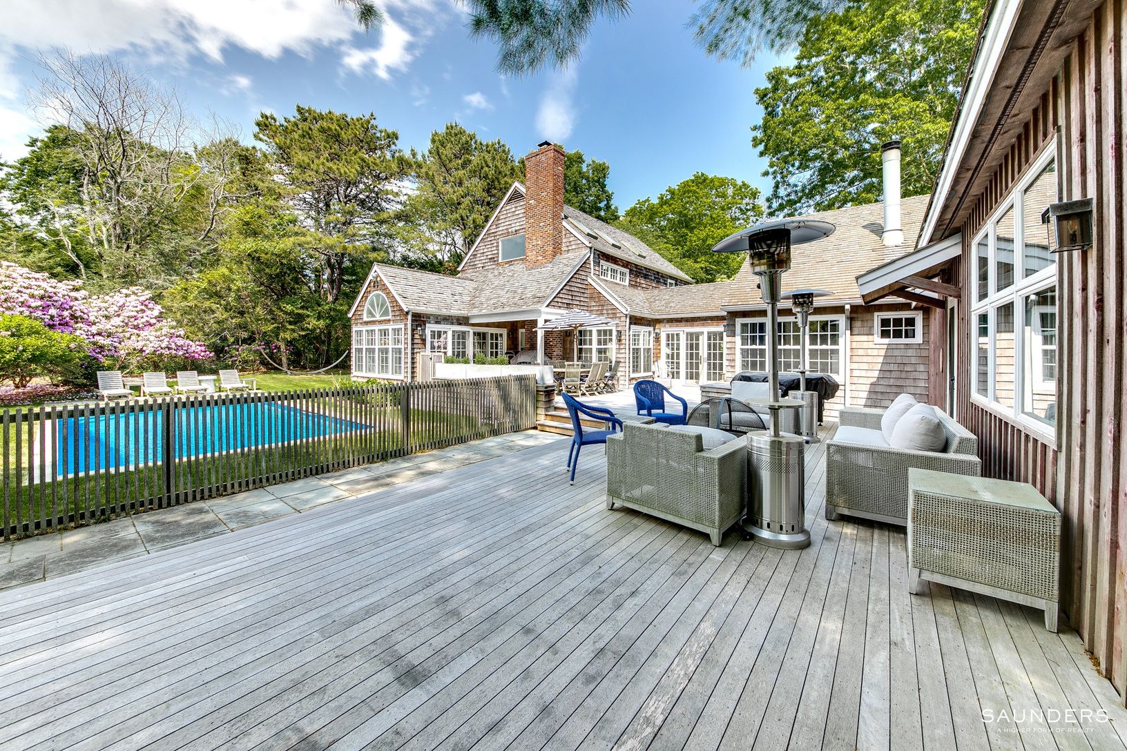 Spend July in this stylish 4 bedroom 4 full bath home close to the village on Green Hollow. This 1.26 acre property has reserves on two sides of the property. The first floor features a spacious primary, walk in closet with laundry and a large bathroom with a steam shower. The media room has a fireplace as well as a wet bar. Off the kitchen is a double height living room with a fireplace, dining room, and an en suite guest bedroom. There are t