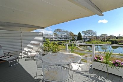 This two bedroom, three bath unit is bright with spacious upper deck off main living level, plus finished basement with additional patio. The community offers a beautifully landscaped pool area and boat dock slip is available on your private canal located within the heart of the village. The quarterly co-op fees include taxes, maintenance, heat, water, and electricity. This co-op offers a turnkey Hamptons lifestyle.