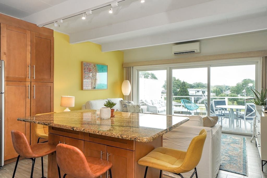 Make This Lovely, Waterfront, Westhampton Beach Co-Op Your Hamptons Home or Summer Retreat! This One Bedroom, Sun-Filled, Tastefully Updated Unit is Located in the Beautiful, Private, Harbour House Development in the Heart of Westhampton Beach Village; Across From the Village Marina. Eat-In-Kitchen, Granite Counters and Large Island to Gather Around. Great Living Room with Sliders to The Large Deck Overlooking the Water. Enjoy the Heated, Guni