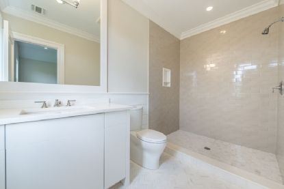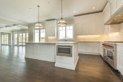 Just completed, located near Southampton Village on a very quiet block, with five en-suite bedrooms, seven and one-half bathrooms, gracious two-story entry, an open kitchen and living room with French doors providing plenty of natural light and accessing a spacious, bluestone deck overlooking a heated gunite pool and large grass lawn surrounded by a tall perimeter of privet for privacy. The finest building materials and finishes are provided t