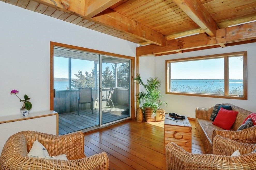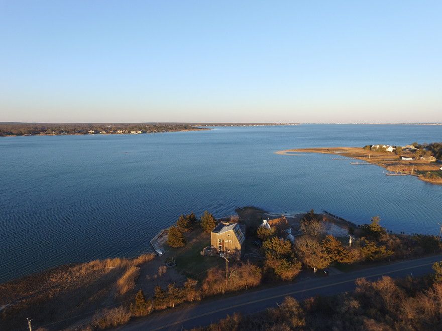 Welcome to paradise! How rare it is that such a special home, especially a contemporary bay-front beauty like this, comes to market on this very desirable street in East Moriches. This fabulous custom-built, 1,968 square foot, post-and-beam house offers exceptional waterfront views on all four sides, with a bulk-headed waterfront property and a pile foundation rising 12.5 feet above high tide for storm protection. Decks on all floors (totaling