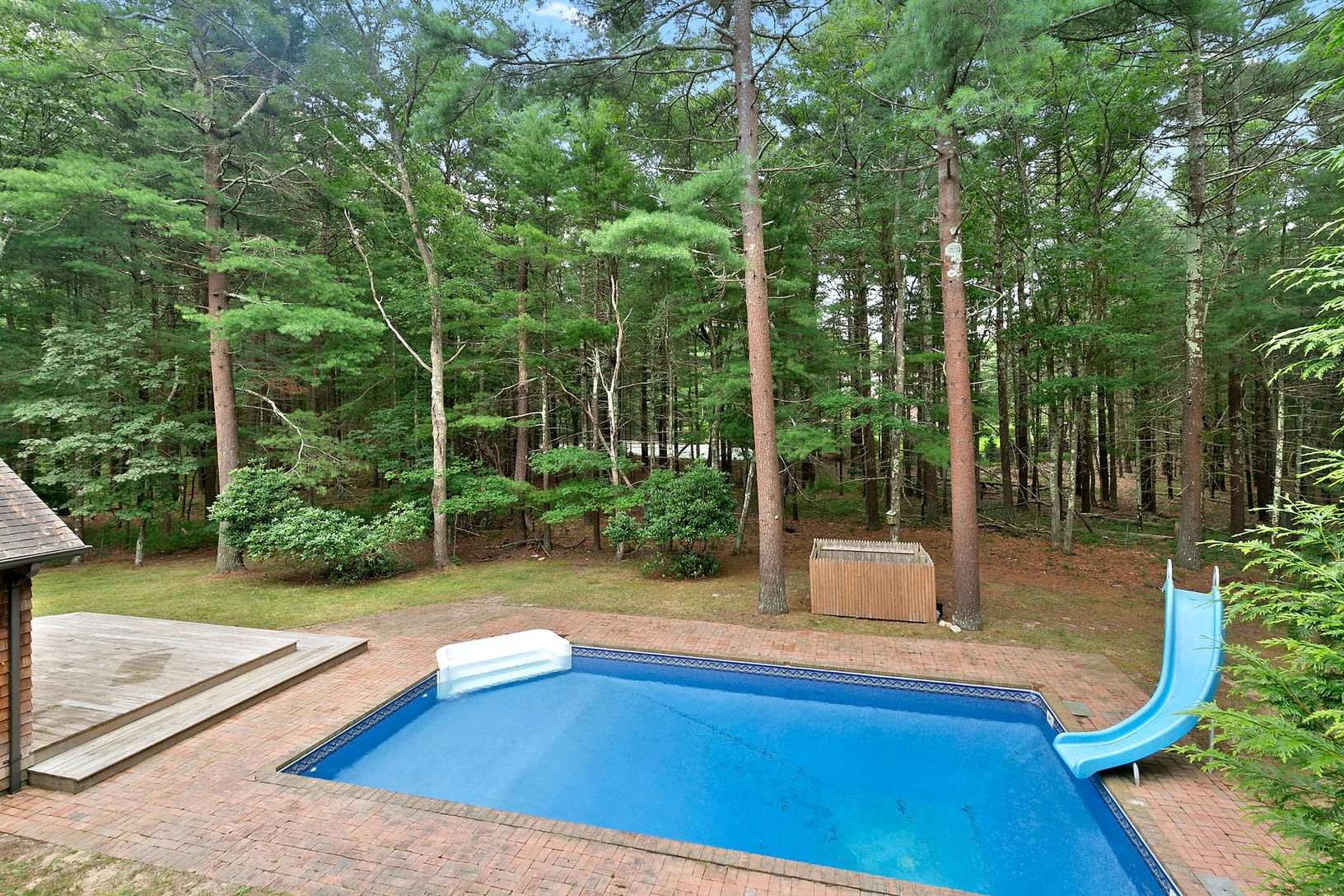 3.44+/- acre private lot close to Sag Harbor and East Hampton Village. Four Bedrooms, Three And A Half Bathrooms, bonus rooms, Post Modern With Vaulted Ceiling With Fireplace, Formal Dining Room, Great Room With Fireplace Eat-In Kitchen, First Floor Master En-Suite Second Floor Offers One Bedroom, Full Bath And Office, Two-Car Garage, Full Basement, In Ground Pool Complete This Home.
