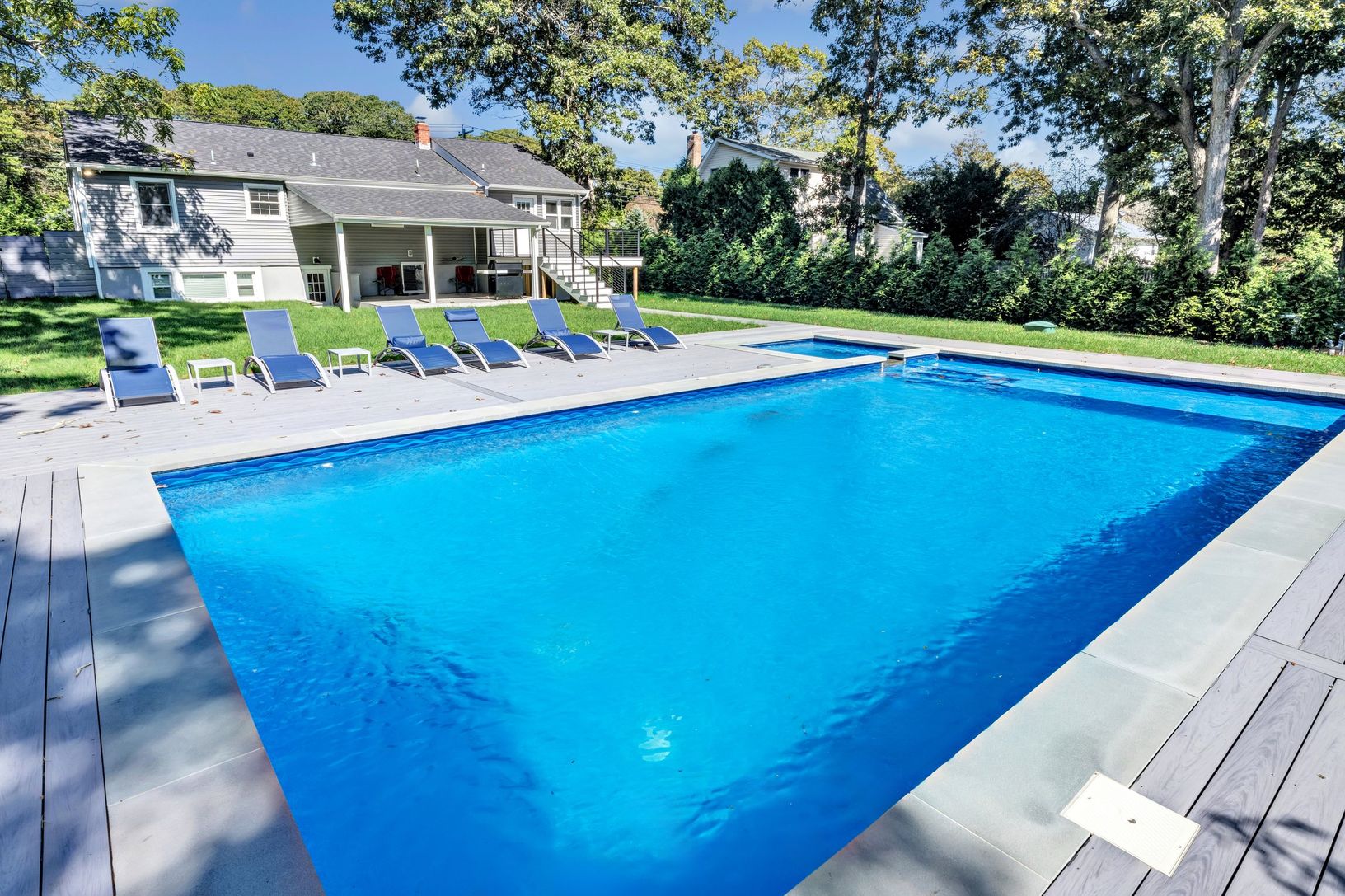 Resort-style living in the very heart of vibrant and desirable Hampton Bays! This completely turn-key and updated Residence is a true gem in every sense of the word, and is suitable for just about everyone's needs and desires! The backyard oasis features a custom-built, heated, saline swimming pool with an adjoining hot-tub, surrounded by generous trex decking, wonderful for entertaining and/or simple relaxation. There is also a covered stone