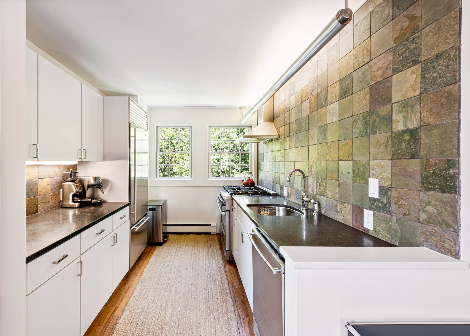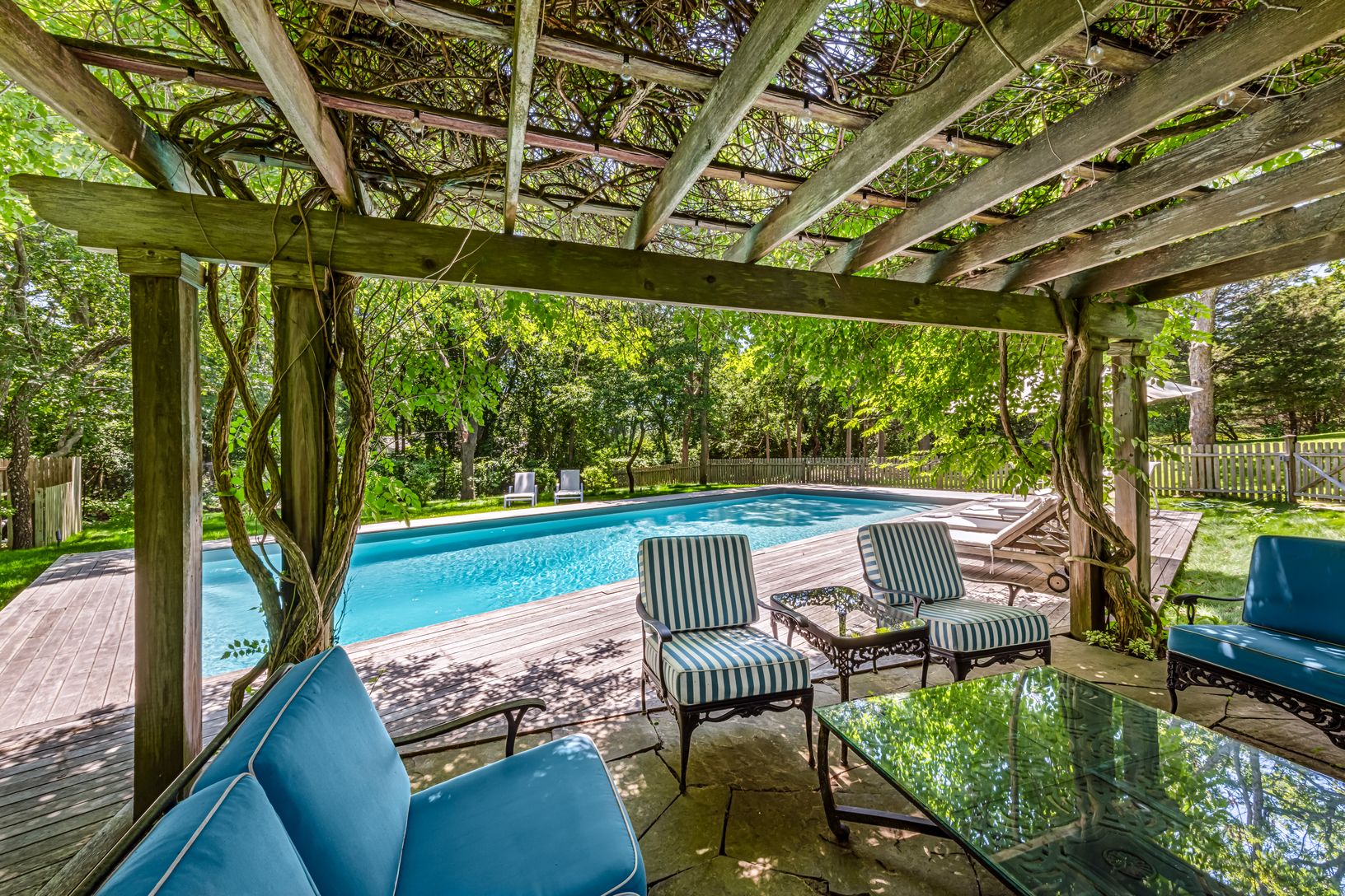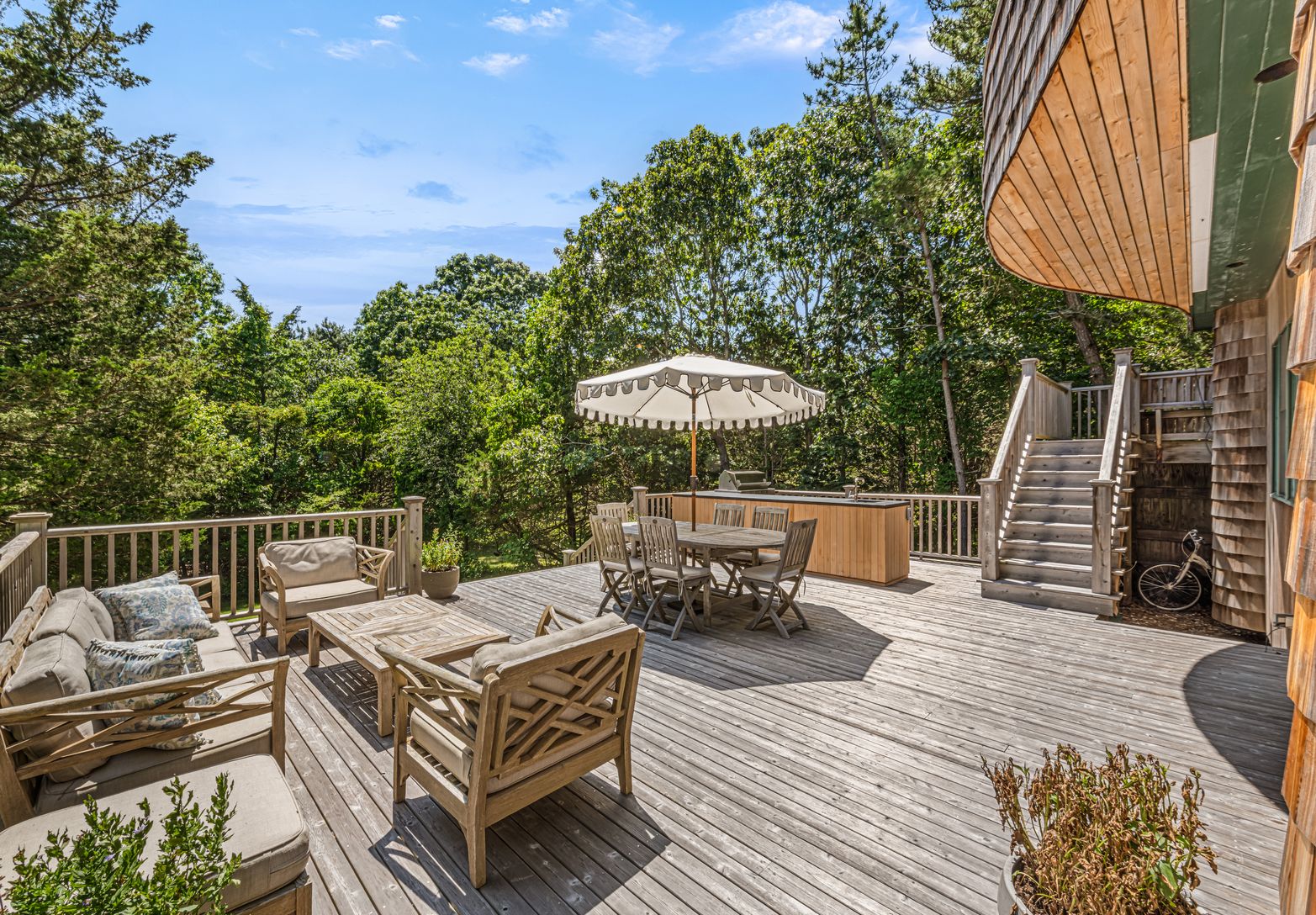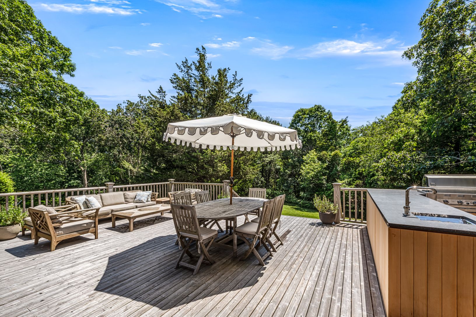 Set on 1.36 acres south of the highway, it offers lush privacy just minutes from Southampton Village and Coopers Beach. High ceilings, sun-filled living spaces, and a chef’s