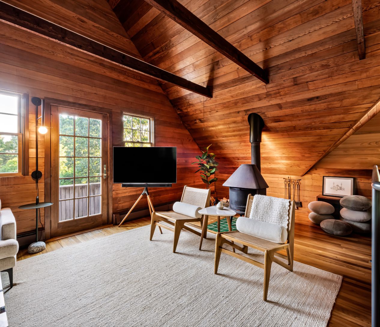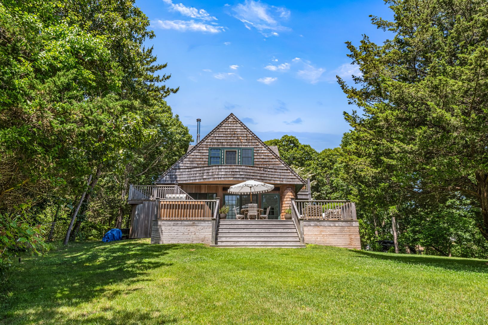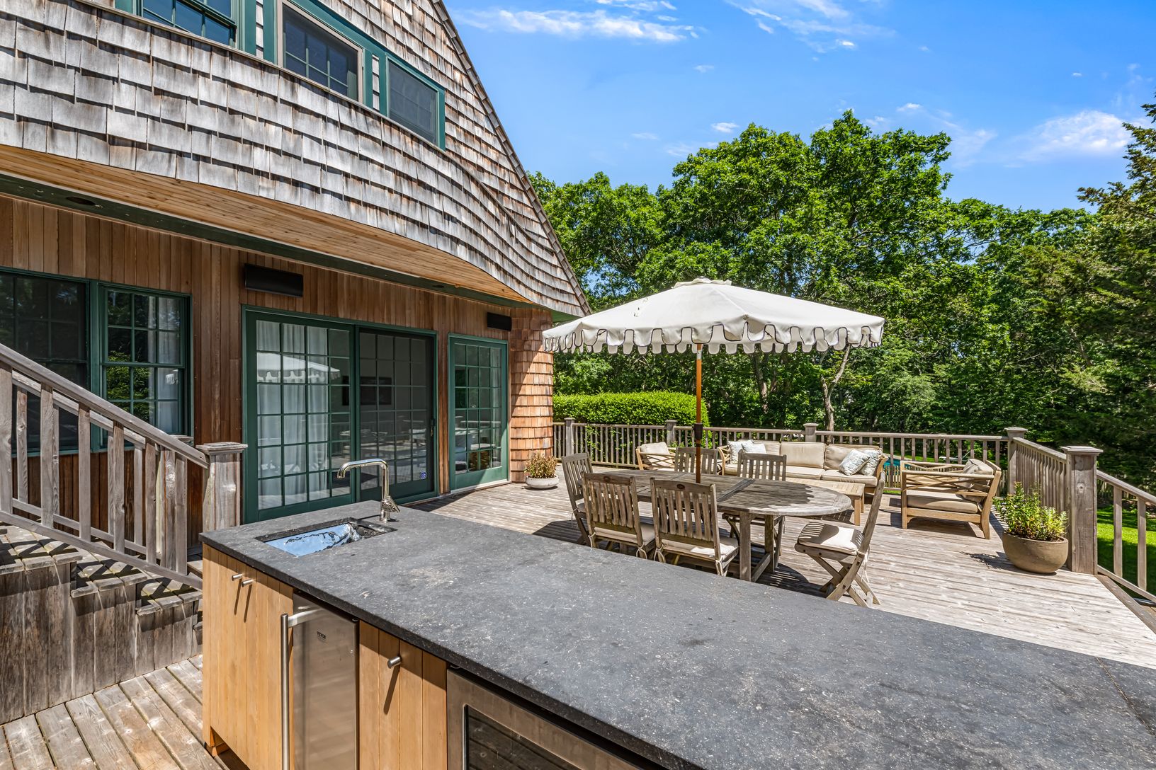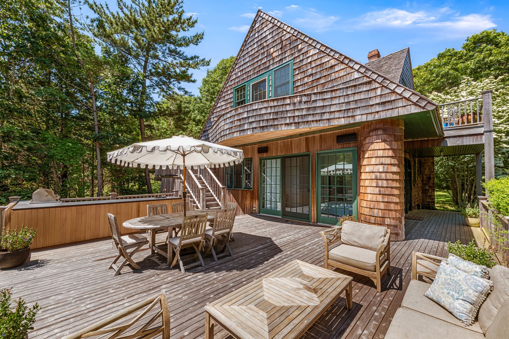 Step into timeless elegance at this historic cedar carriage house, originally designed in 1910 by Grosvenor Atterbury and awarded “House of the Year” in 1982. Thoughtfully restored, this 3-bedroom, 2-bath home blends classic Hamptons charm with modern sophistication.