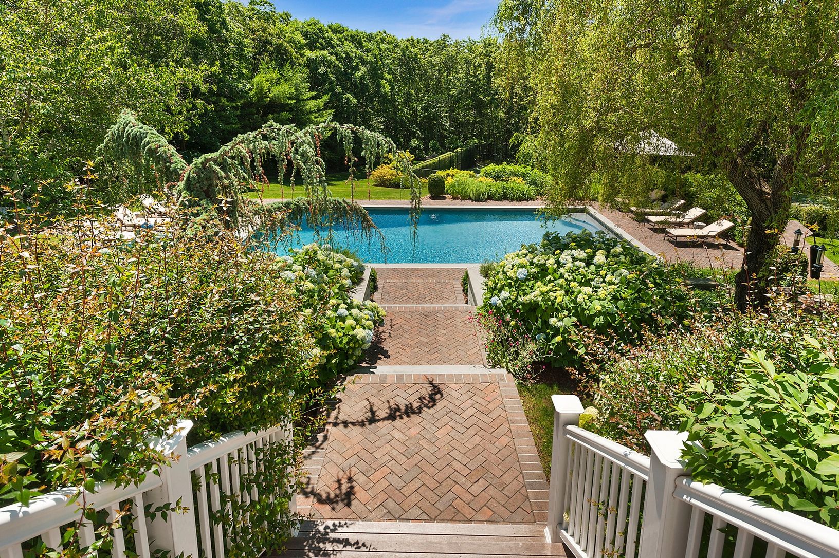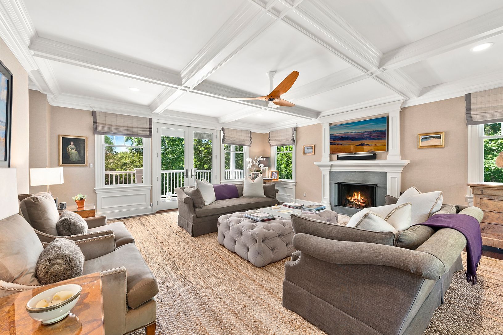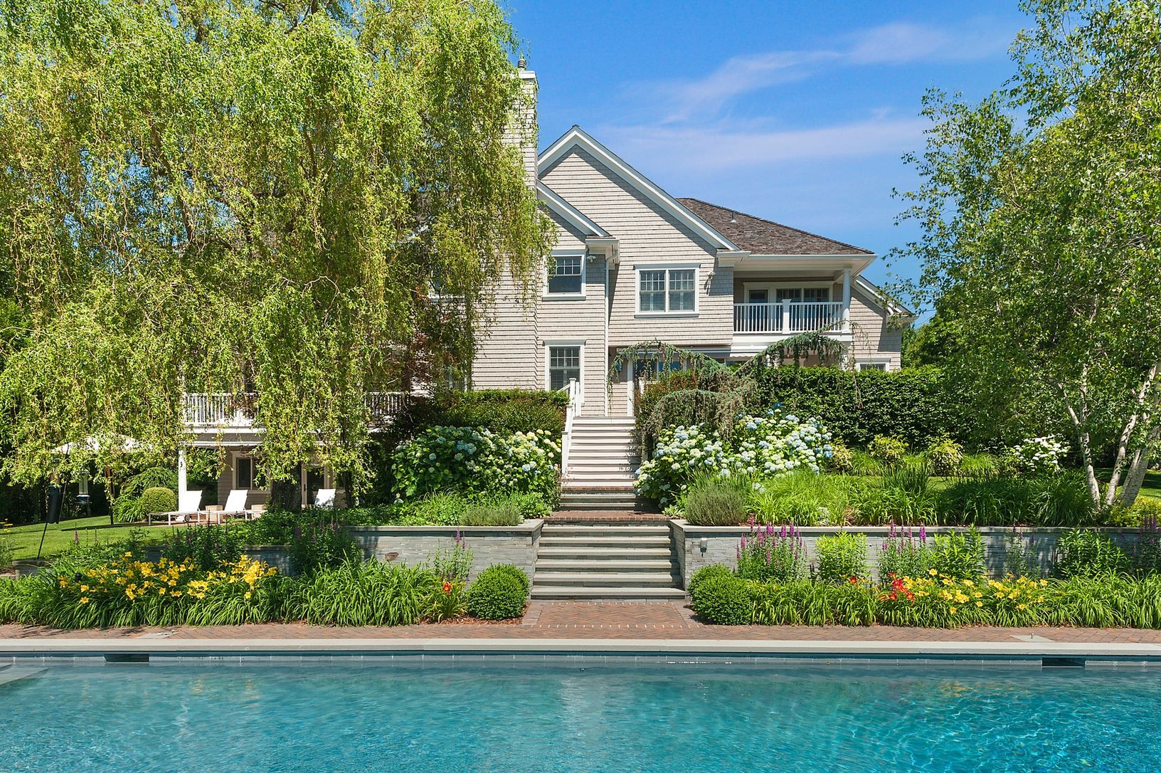 Meticulously transformed, this recently renovated Traditional exudes elegance and privacy, conveniently located on 5.9 acres in Water Mill. The layout blends outdoor and indoor living with multiple decks, terraces, and porches overlooking the rolling lawn, gardens, Gunite pool, and tennis court. High-end amenities include the grand foyer, great room with fireplace, formal living room with fireplace and coffered ceiling, new eat-in kitchen with