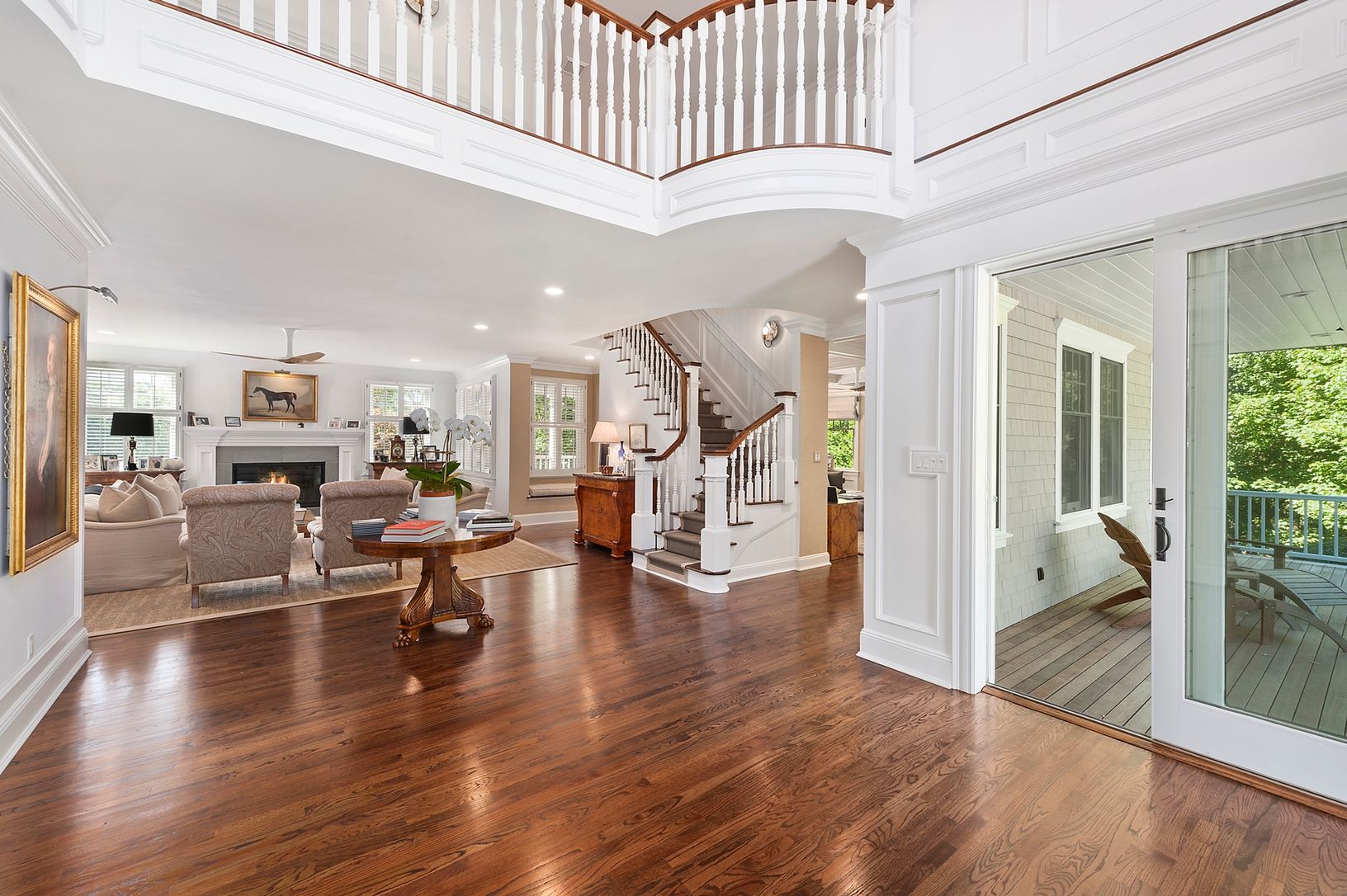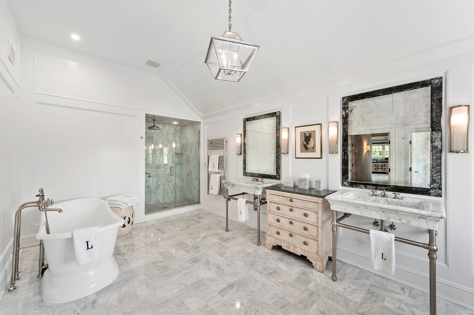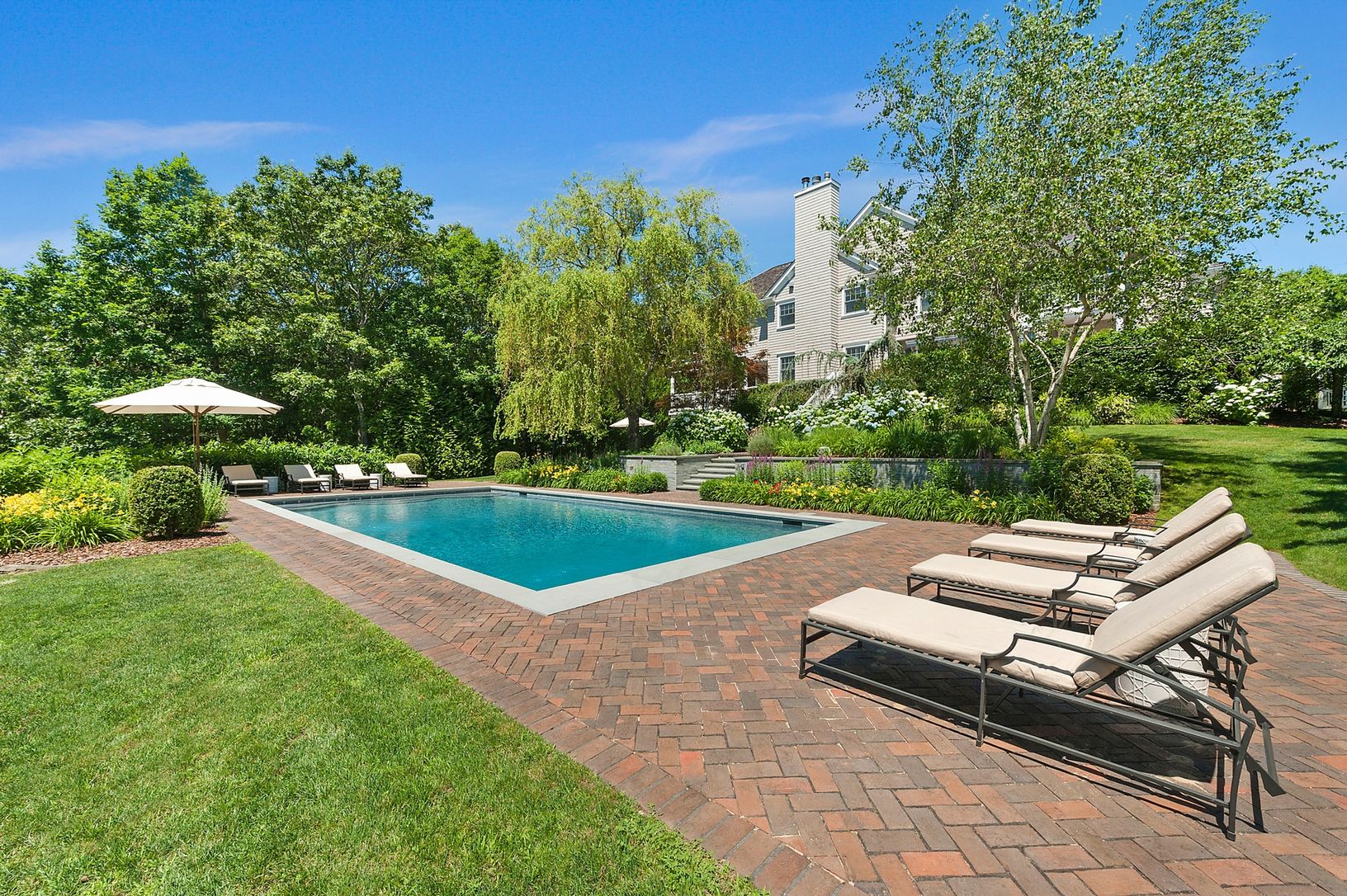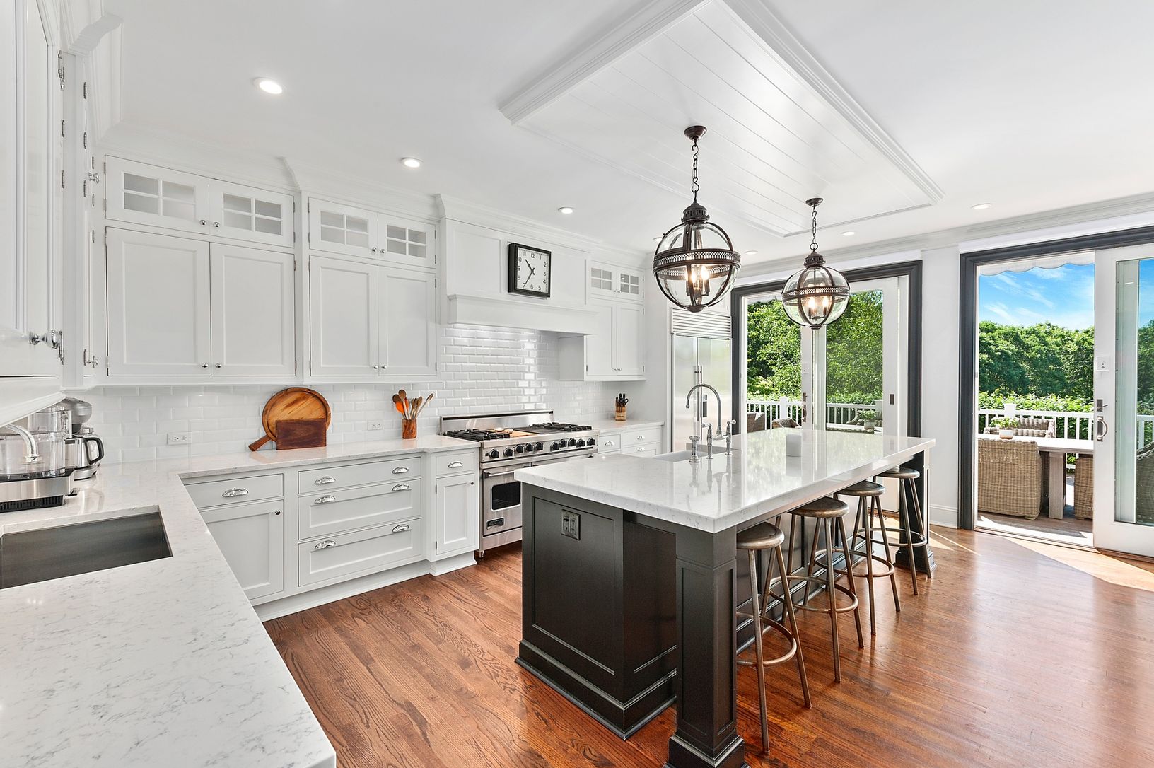 Meticulously transformed, this recently renovated Traditional exudes elegance and privacy, conveniently located on 5.9 acres in Water Mill. The layout blends outdoor and indoor living with multiple decks, terraces, and porches overlooking the rolling lawn, gardens, Gunite pool, and tennis court. High-end amenities include the grand foyer, great room with fireplace, formal living room with fireplace and coffered ceiling, new eat-in kitchen with