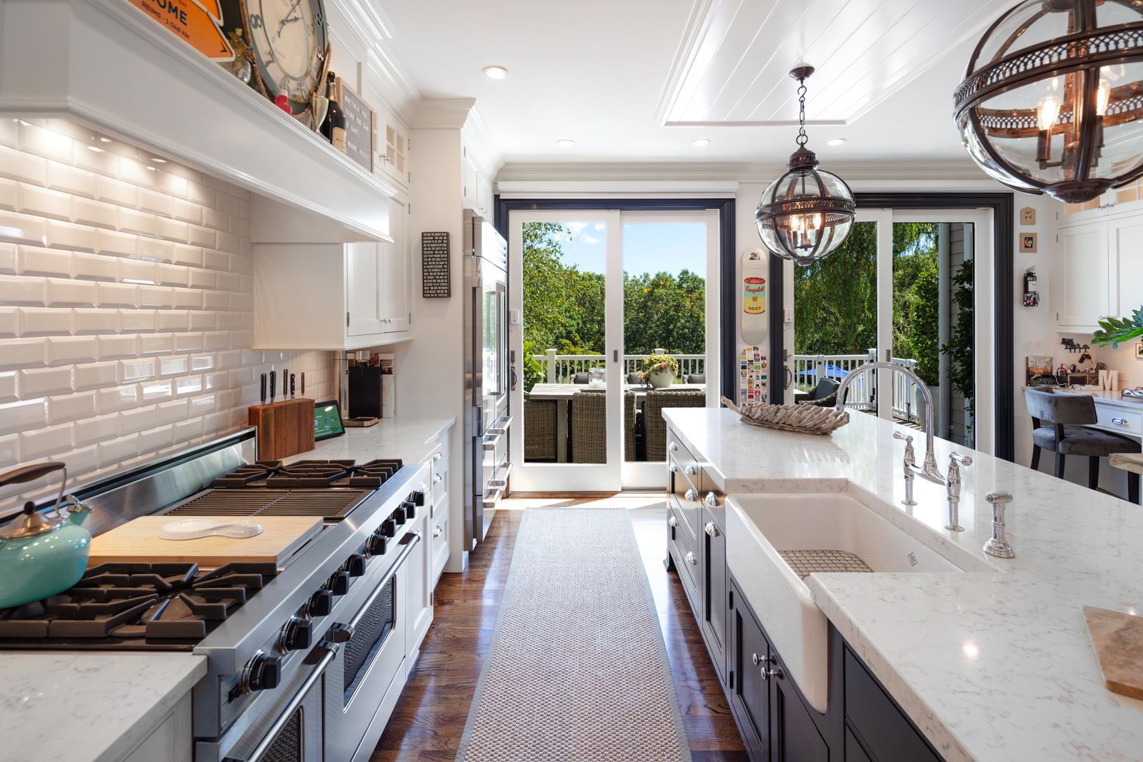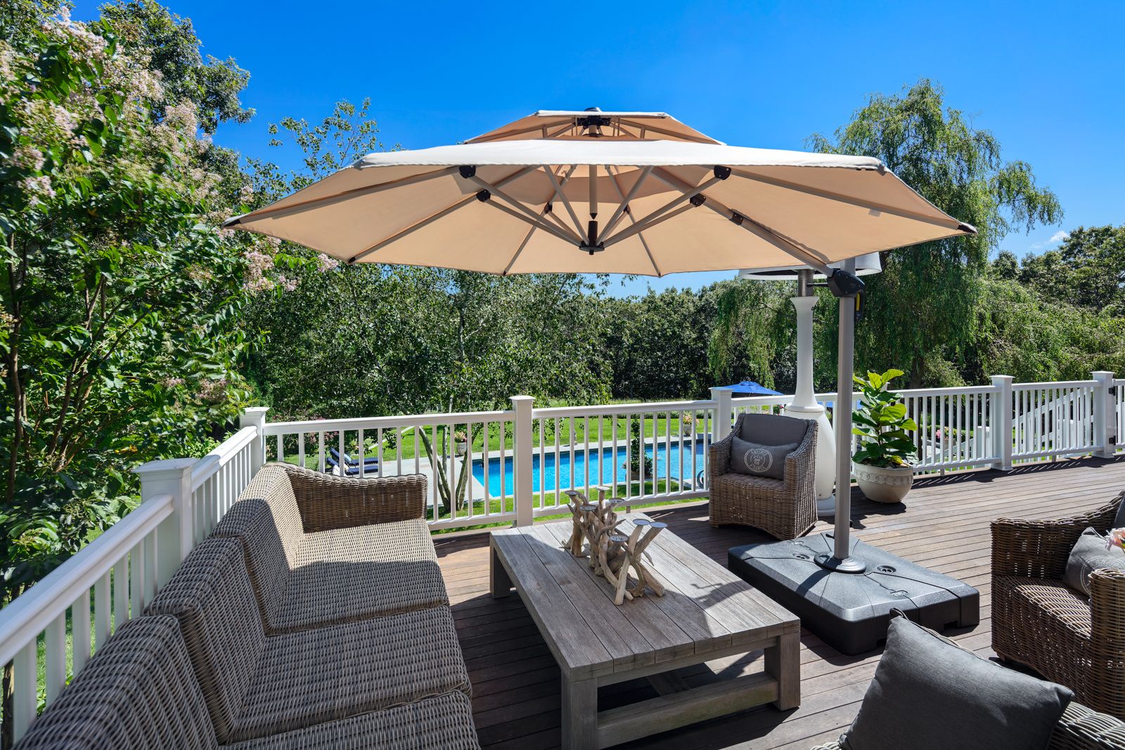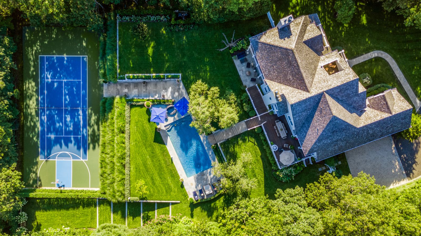 Turnkey, spacious and private, this immaculate gated estate on 5.9 acres embodies what is most in demand for 2020 in the Hamptons. The impeccably maintained grounds offer a park-like setting with extensive bluestone, professional landscaping, lighting and sound system, rolling lawn, multiple decks, a gunite saltwater pool with an automatic cover, and the all-weather tennis court. The flawless interior boasts custom millwork and details through