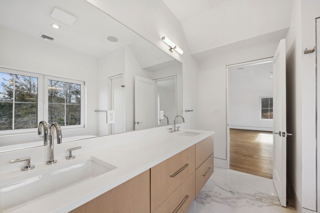 Extraordinary and unbelievable value awaits you in this newly constructed Southampton Modern Farmhouse! This ultra-luxurious residence borders a 35 acre reserve on a quiet and private street with innovative design spanning approximately 5,800 square feet. The proposed plans have the utmost attention to detail featuring a double-height foyer, illuminated floating staircase with iron railing, reglet trim throughout, marble fireplace in great roo