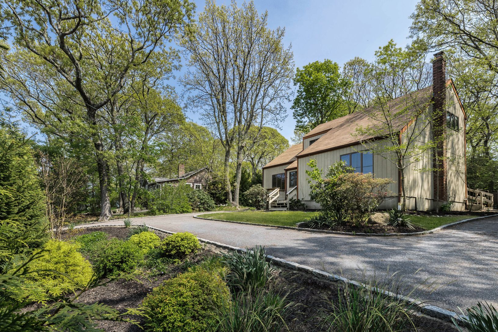 This attractive contemporary nestled in the heart of Sag Harbor and set back off the road with views of Noyac Bay has 3 bedrooms and 2 baths. The residence spans 1500 +/- SF and is situated on a beautifully landscaped 0.33 acre lot. The home features an open concept that includes a kitchen, living room, dining room, full bath and a wood-burning fireplace downstairs and a primary bedroom and two additional bedrooms with a full bath, upstairs. T