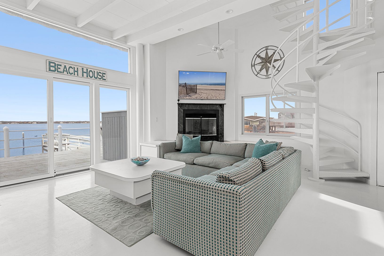 Here is your chance to spend August or September on Dune Road in Westhampton Beach! This bayfront home takes full advantage of the sweeping panoramic water views and incredible sunsets! Upon entering the four bedroom, four bathroom beach house, floor-to-ceiling windows frame the picturesque view and allow an abundance of natural light to fill the great room. This level also includes two guest bedrooms and two bathrooms. The second floor off