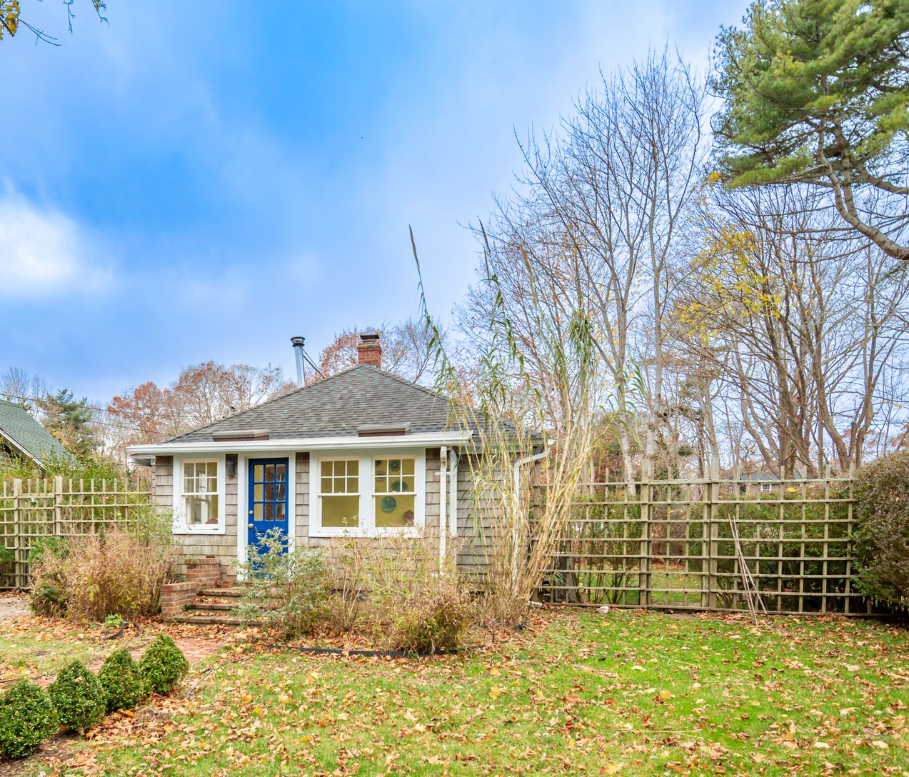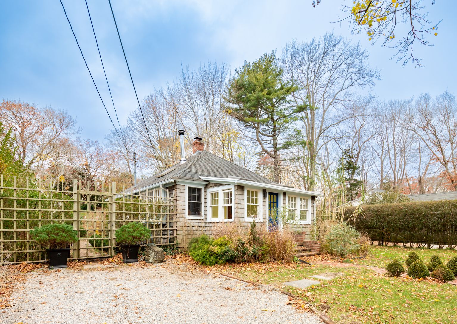 Nestled in a quiet part of Springs, close to Accabonac Harbor and Louse Point, this circa- 1935 cottage has a bright great room with skylights and a wood stove, a sunny enclosed porch, two cozy bedrooms and one bath. Edged by mature trees, the expansive garden in back slopes uphill towards a stone terrace and includes a goldfish pond stoked with waterlilies, a garden shed, and two seperate, unique studios ideal for artists or writers.