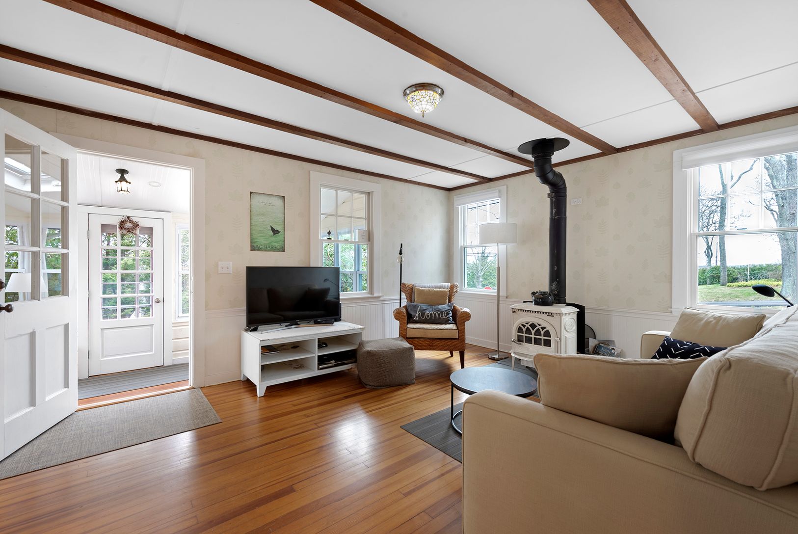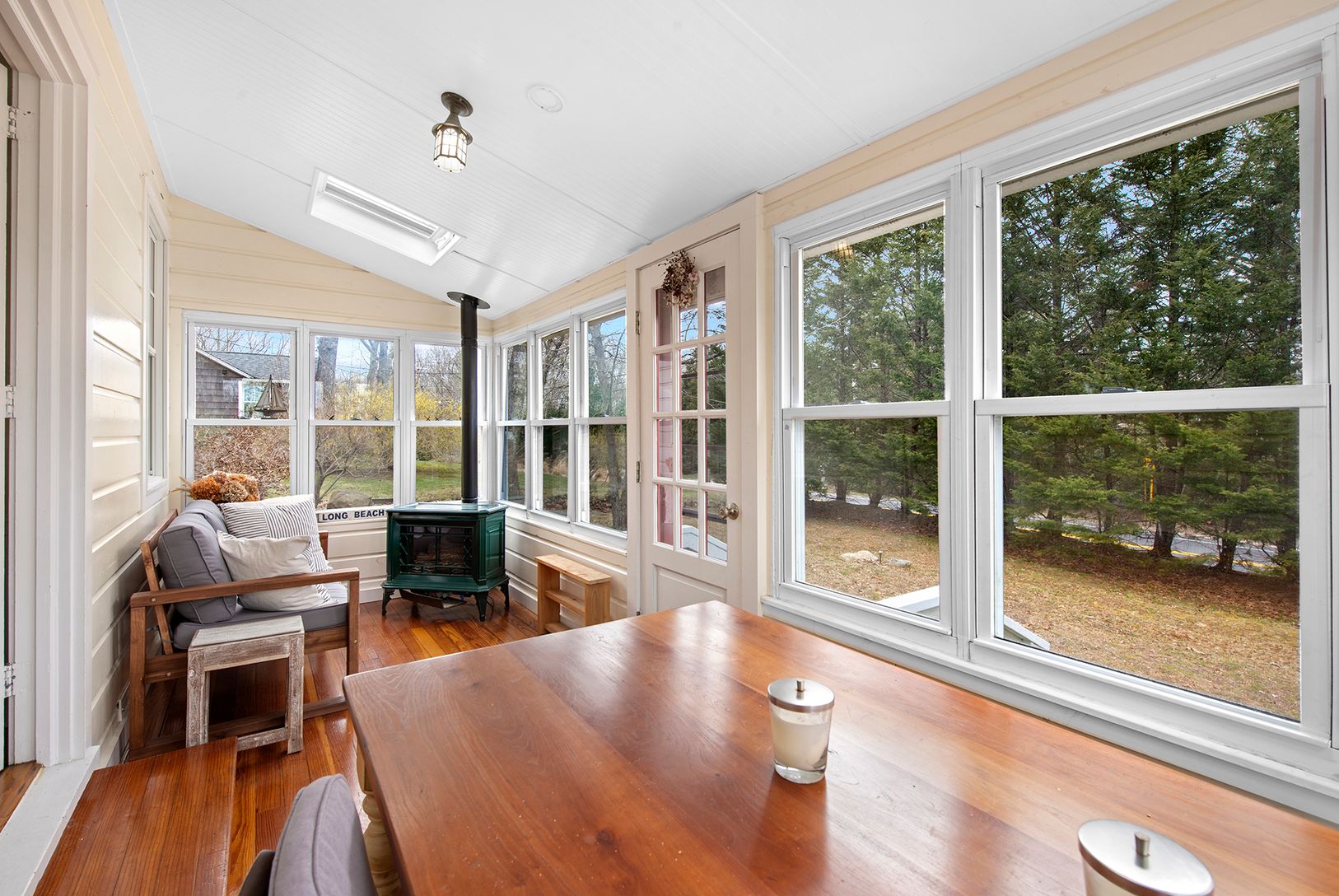 Renovated summer cottage with hardwood floors, central air, 2 bedrooms, 1 bathroom, enclosed sun porch, and large fenced-in yard. Clean and carefree house that is convenient to Long Beach and Sag Harbor Village.