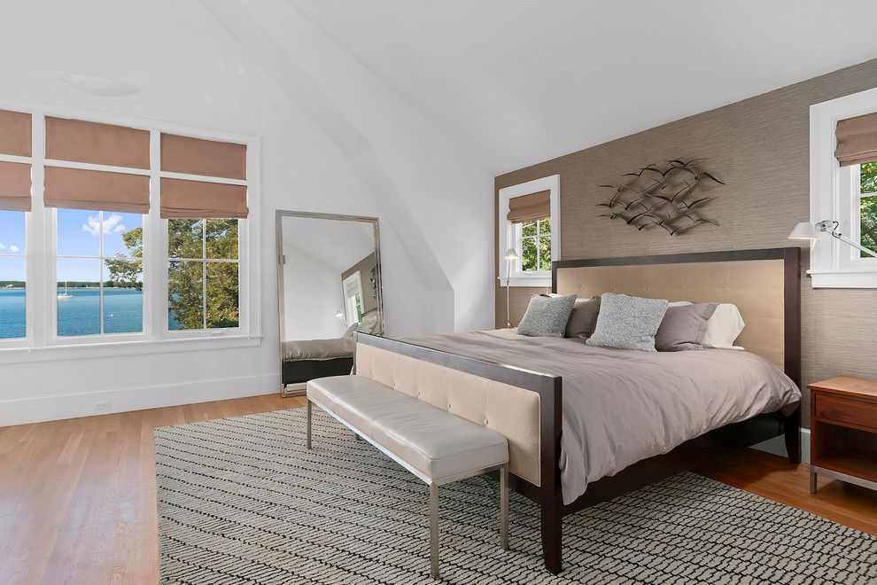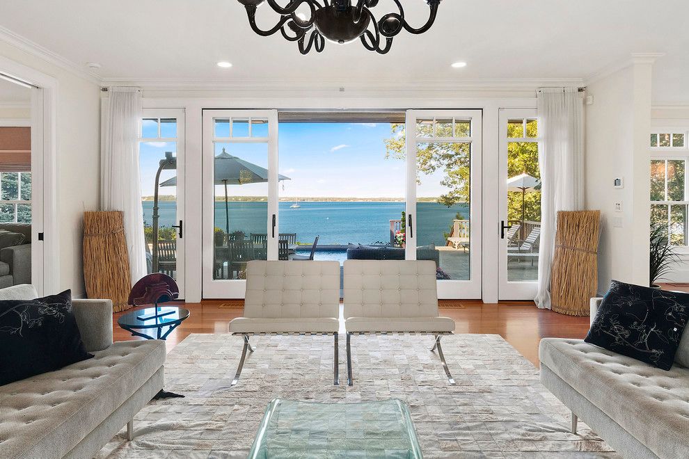 This gorgeous 9,000 sq. ft., 7-bedroom, 6.5 bath Sag Harbor home on 1 acre has 153' of waterfront and private beach on Noyac Bay with breathtaking views of the bay and Long Beach. An open state-of-the-art kitchen and dining area are complimented by water views from the great room and den areas, plus a cozy reading room/den. Other highlights are four fireplaces, hardwood floors, CAC, an in-law guest suite and guest bedrooms affording your compa