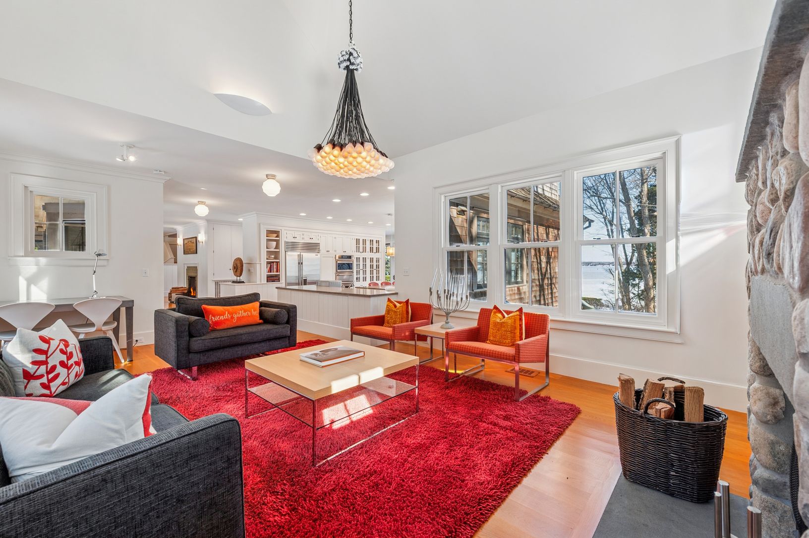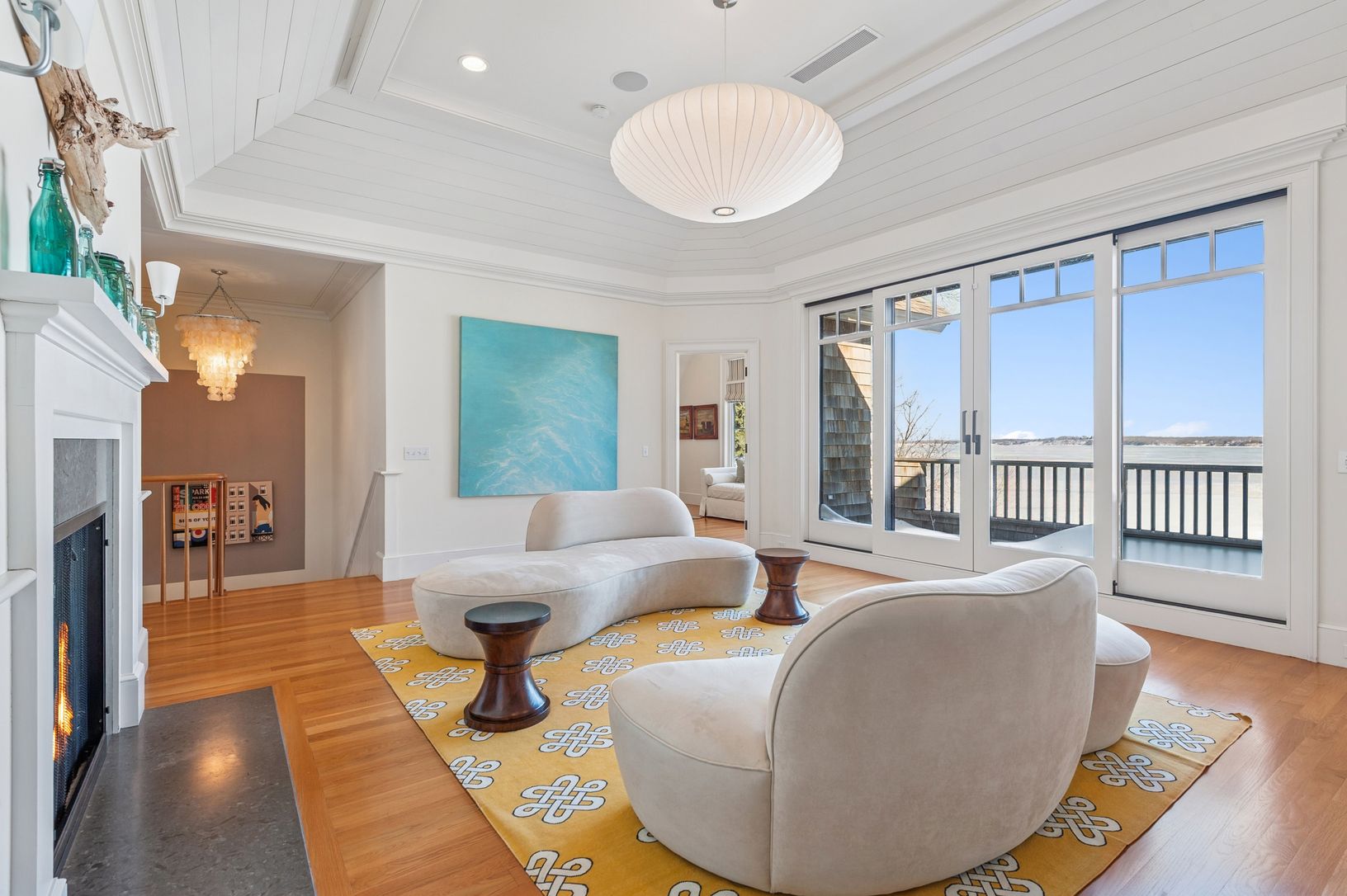 Tastefully decorated in a comfortable modern style by a team of international designers, this gorgeous 9,000 sq.ft., 6-bedroom, 7.5 bath home, sits on a secluded acre with 153' of water frontage and direct access to a semi-private beach. With breathtaking views of Noyac Bay from almost every room, this home has it all! The open, state-of-the-art kitchen has 2 dishwashers, 2 sinks and everything a chef might need. Multiple living areas ensure r