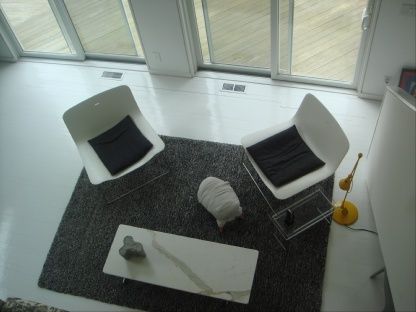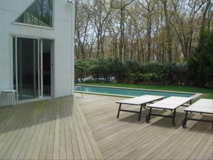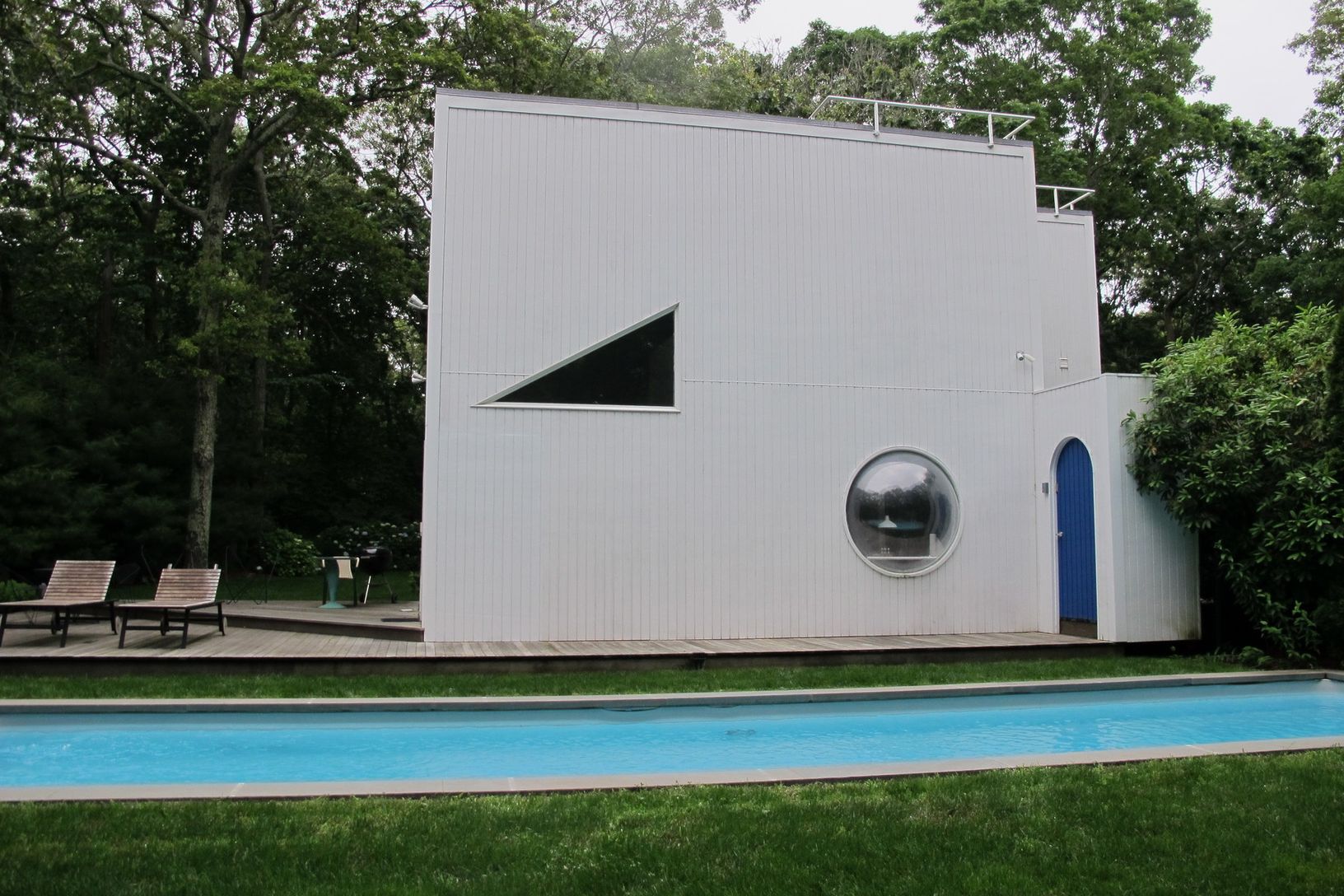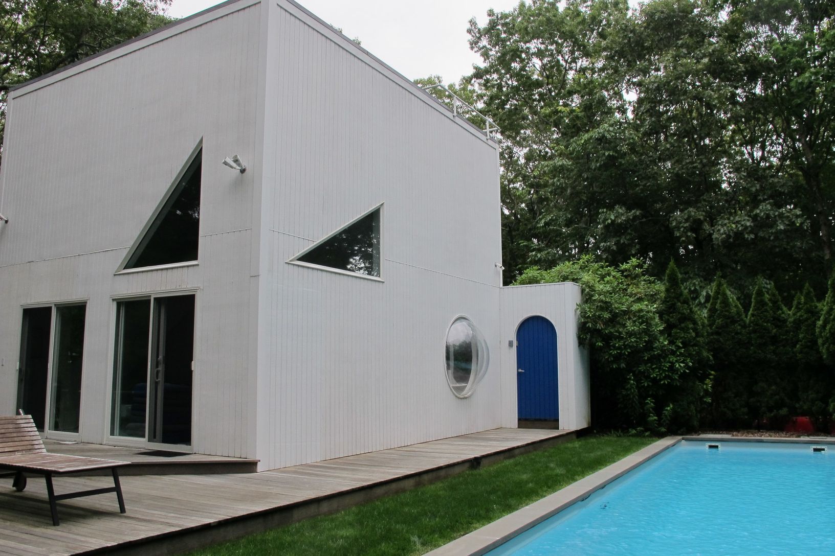 AWARD WINNING MID CENTURY MODERN HOUSE East Hampton modernist home built originally in 1971 designed by Henri Gueron, architect, won the National Home Design Award presented by the A.I.A. in 1972. It has been lovingly restored keeping the original integrity intact. Light filled in a private setting down a long drive off the road this 3 bedroom home has a main floor master, a newly installed Valcucine Italian kitchen with Miele appliances and a