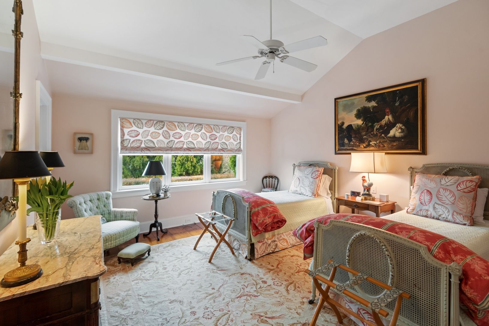 Enjoy a quintessential Hamptons experience in a coveted section of Southampton Village. This serene home with mature landscaping creates an enchanting entry into this beautiful property. Situated on just over 2 acres of manicured park like grounds, Folly Fields features a masterfully designed rose garden, climbing plant pergola, specimen trees, a gunite pool, and room for tennis. This home features four bedrooms, 6.5 bathrooms, and 3 fireplace