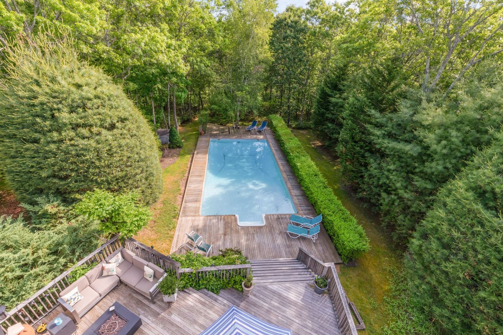 This gorgeous contemporary 4 bed, 2.5 bathroom home sits on 4 acres on a private road in East Hampton. The house was recently renovated and has a beautiful custom kitchen that opens up to the pool, decks and meditation pond. There is plenty of room to extend and to put in a Tennis Court. This is a must see if you want peace and quiet in the Hamptons.