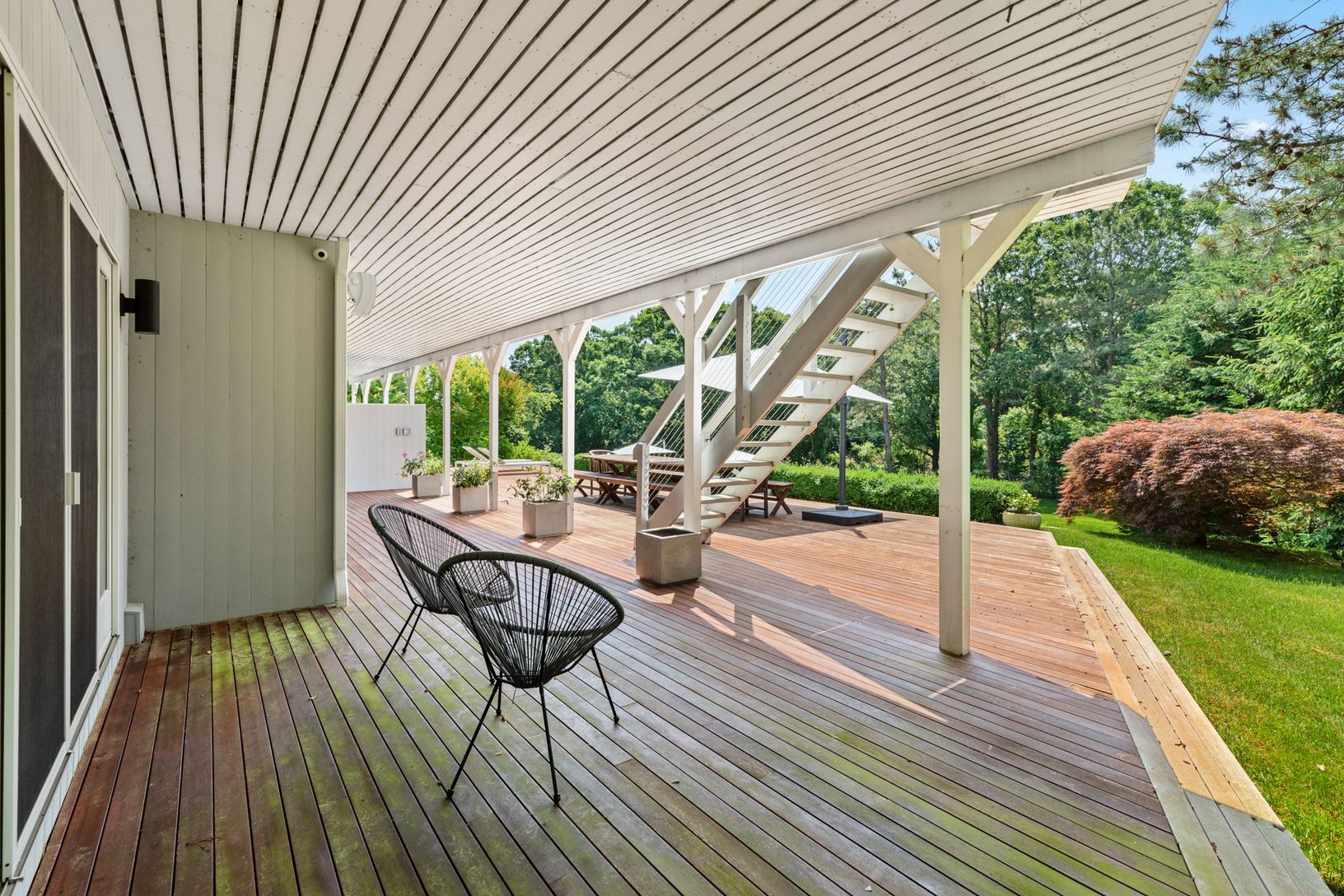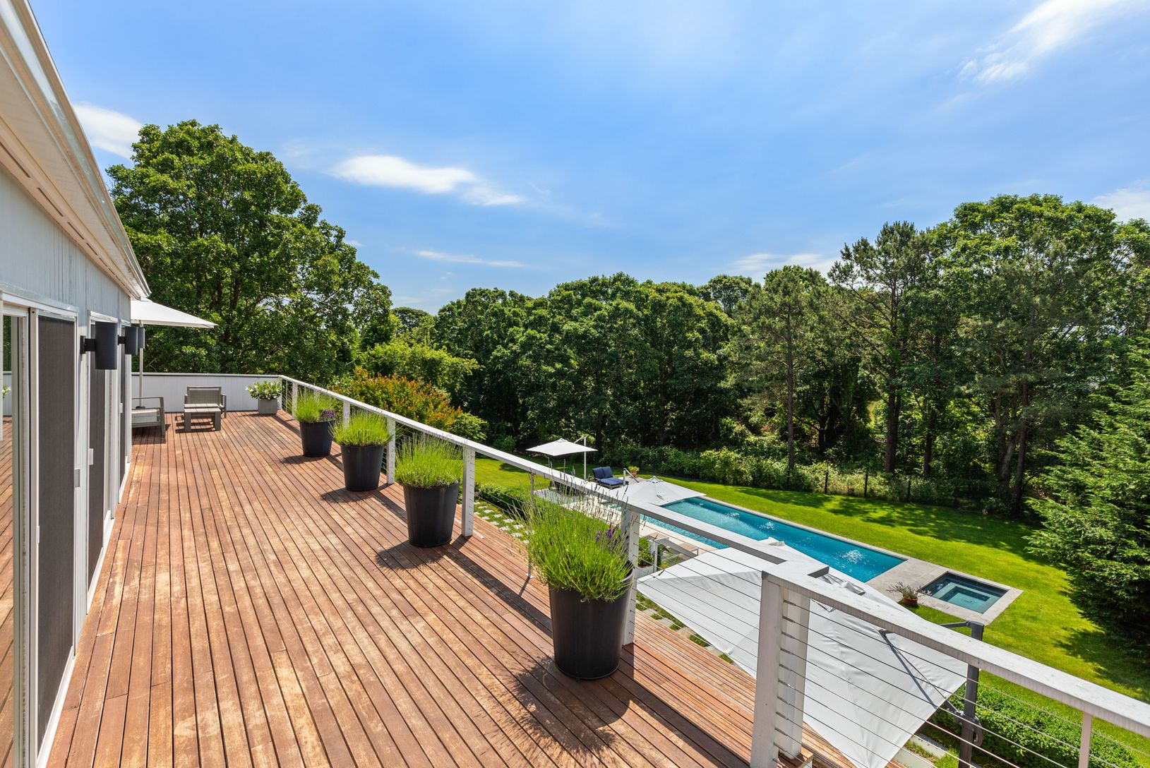 Enjoy a quick trip to summer paradise. This newly renovated Post Modern is located in the desirable neighborhood, The Highlands, south of the highway on a cul-de-sac in Shinnecock Hills. This Southampton home boasts 3000 sq. ft. of living space coupled with 3000 sq. ft. of stunning multiple level decking for entertaining with an additional 1,150 sq ft of unfinished basement. Enjoy the incredible southern exposure views of the heated swimming p